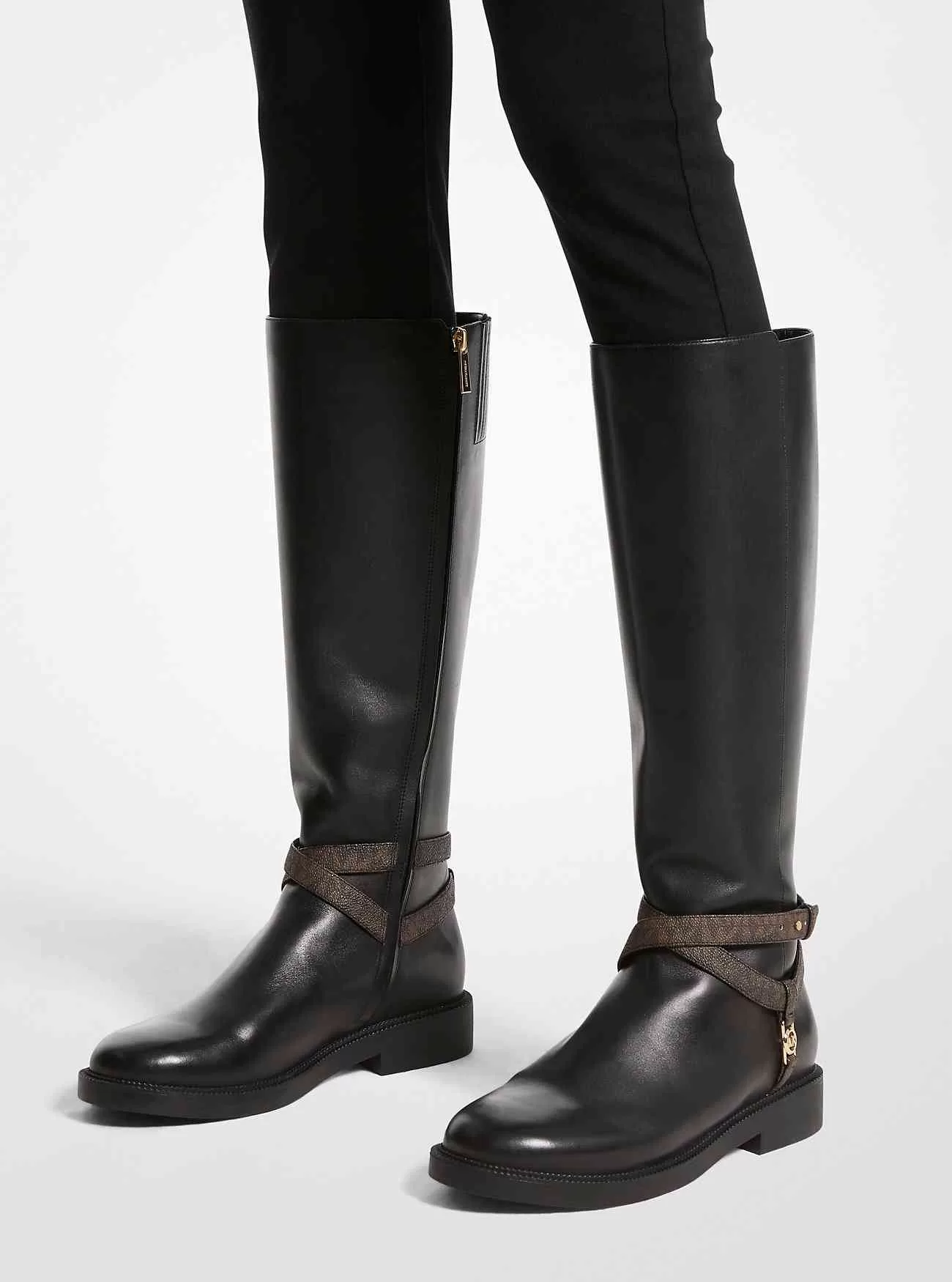 Ein elegantes, kniehohes Design aus geschmeidigem Leder macht unseren Abigail-Stiefel sofort zu einem festen Bestandteil der Garderobe. Dieses vom Reiten inspirierte Modell ist mit einem seitlichen Reißverschluss und einem niedrigen Absatz ausgestattet und verfügt über Riemen mit charakteristischem Aufdruck, die sich um den Knöchel legen. Tragen Sie es zusammen mit einem Minirock.