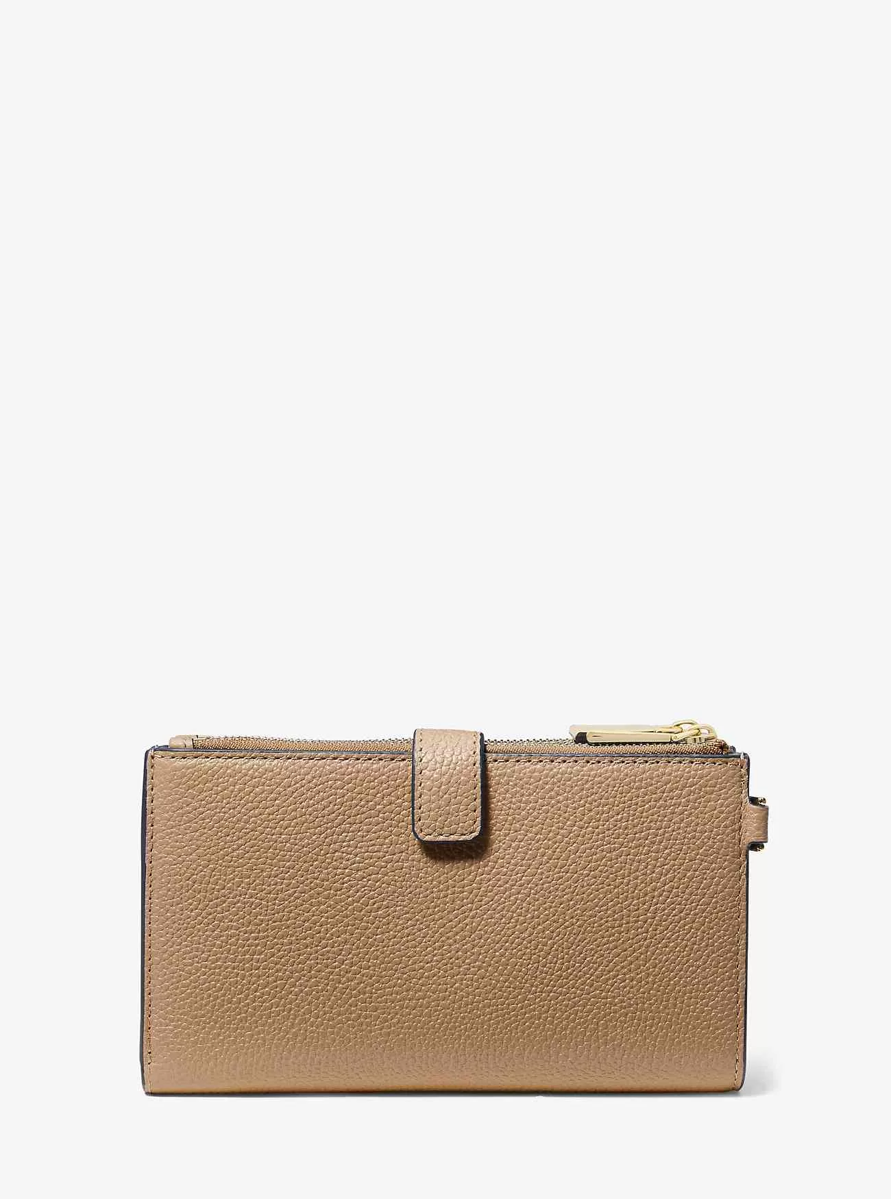 Dieses elegante Portemonnaie besteht aus hochwertigem genarbtem Leder für zeitlosen Status und verfügt über zwei Seiten mit Reißverschluss, die sich öffnen lassen, um in der Mitte Fächer für alle wichtigen Dinge freizugeben, von Kreditkarten bis zu Ihrem Smartphone. Eine Handschlaufe perfektioniert die Vielseitigkeit, sodass es einzeln oder in einer Tragetasche getragen werden kann.
