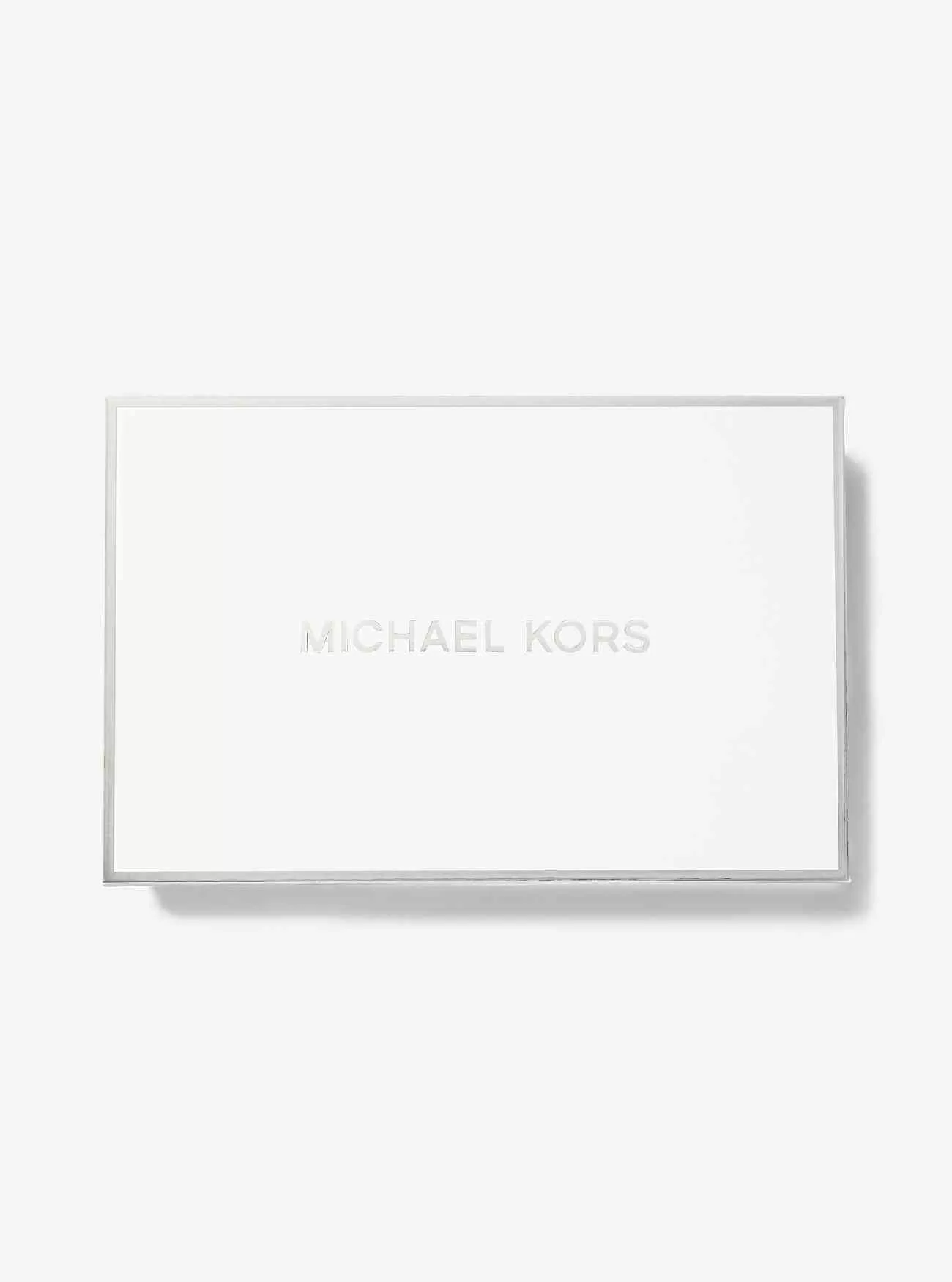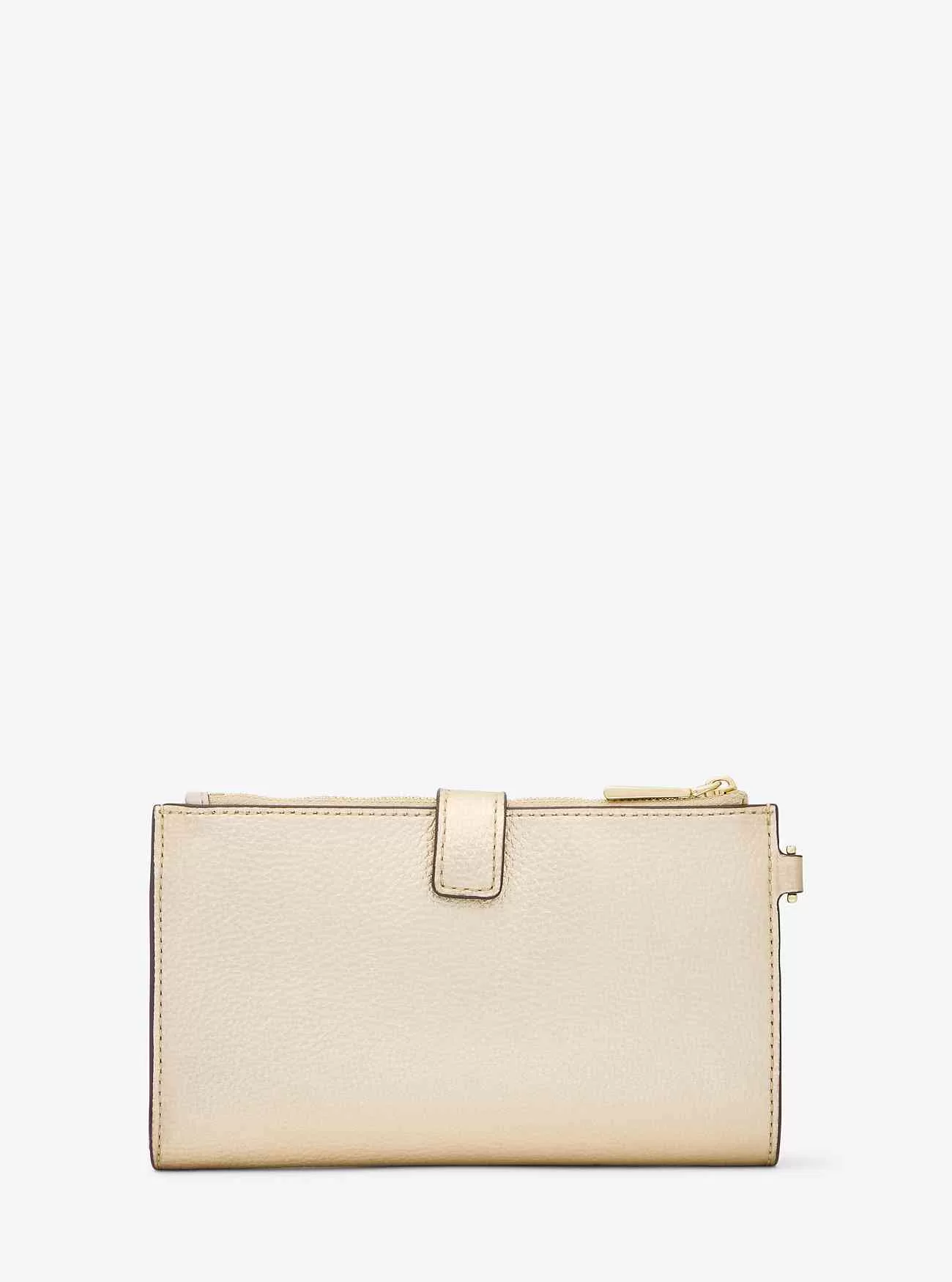 Diese aus metallischem genarbtem Leder gefertigte Brieftasche verfügt über zwei Seiten mit Reißverschluss, die sich öffnen lassen, um eine Mitte mit Fächern für alle wichtigen Dinge freizugeben, von Kreditkarten bis zu Ihrem Smartphone. Eine abnehmbare Handschlaufe macht es vielseitig genug, um es alleine oder in einer Tragetasche zu tragen.