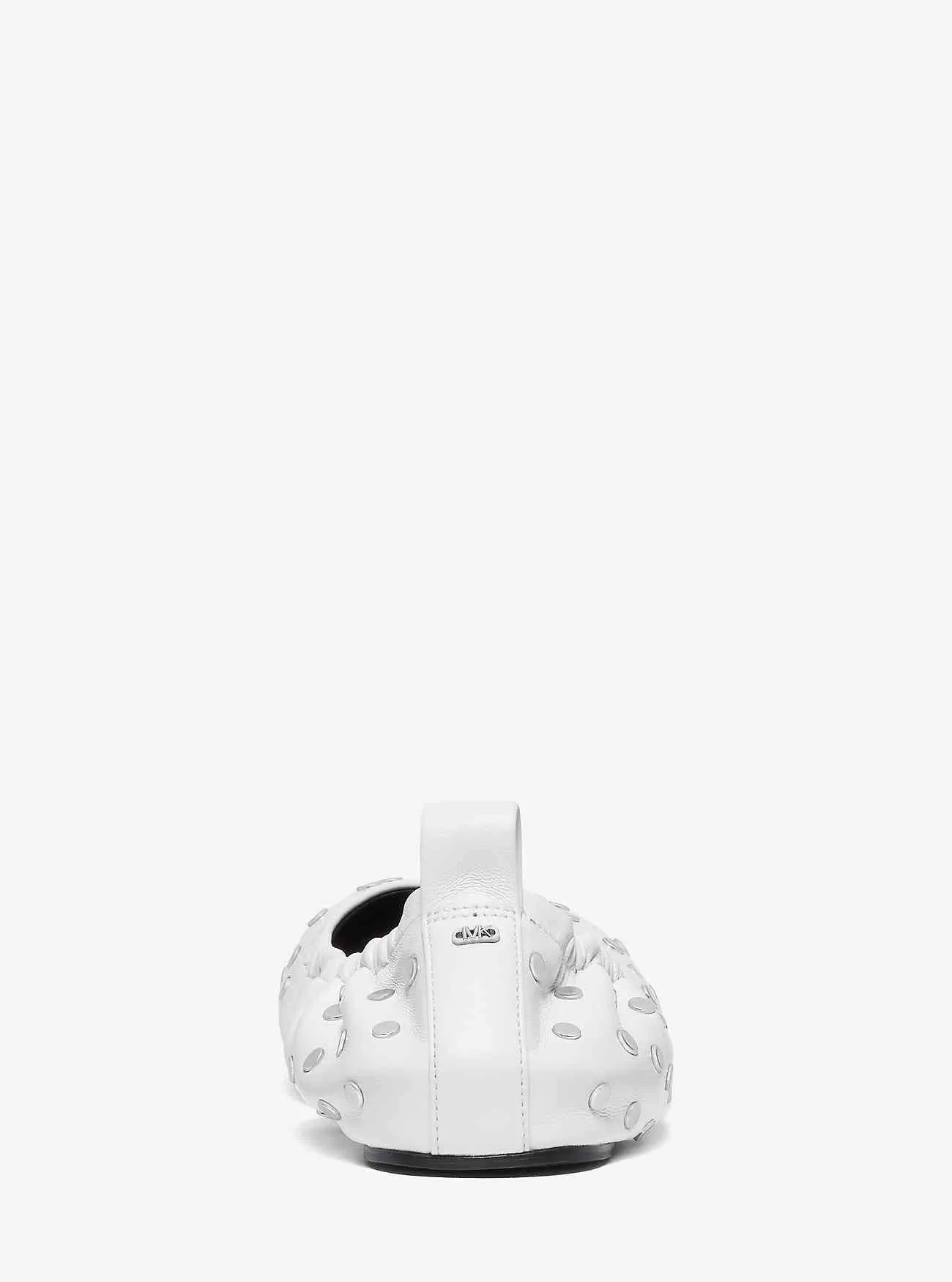 Die Amy-Ballerinas sind klassischen Stilen nachempfunden und mit unerwarteten Details für die heutige Zeit neu interpretiert. Sie bestehen aus Leder, sind mit polierten silberfarbenen Nieten verziert und haben einen elastischen oberen Saum für eine körpernahe Passform. Wir glauben, dass es das perfekte Paar ist, um jedem Look das gewisse Etwas zu verleihen.