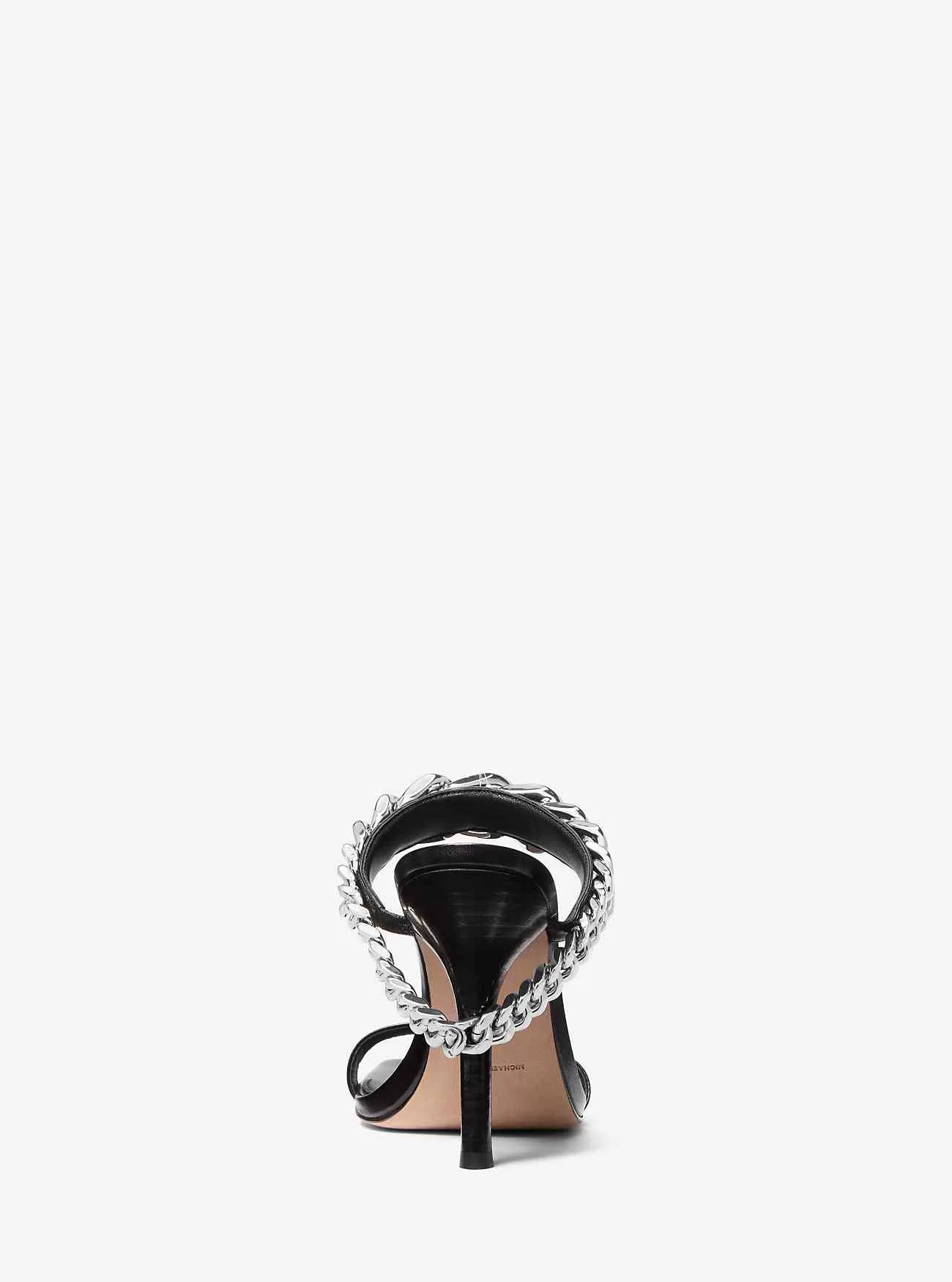 Ein übergroßes Kettengliederdetail macht diese ansonsten schlichte Sandale zu einem Kunstwerk. Der aus Glattleder gefertigte Bianca verfügt über eine quadratische Zehenpartie und einen hohen Stilettoabsatz, der die Hardware in den Mittelpunkt rückt. Koordinieren Sie Ihren Schmuck für ein wirklich glamouröses Statement.