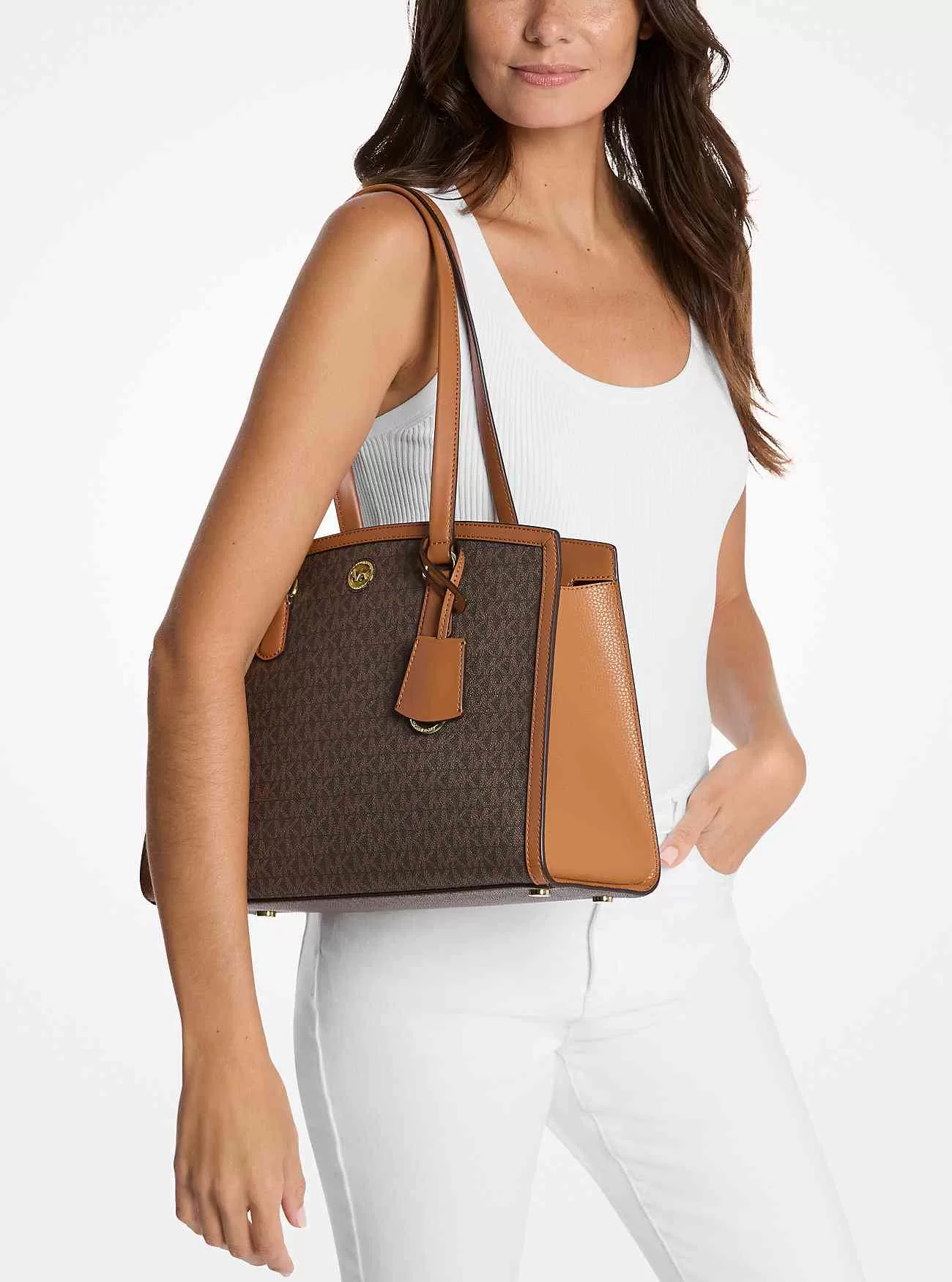 Mit ihrer strukturierten Silhouette und den Akzenten hochglänzender Metallteile ist unsere Chantal-Einkaufstasche ein Muss in jeder Garderobe. Es ist aus Canvas mit charakteristischem Logo-Print gefertigt und verfügt über eine Innentasche, in der Sie das Nötigste sicher verstauen können. Tragen Sie es an den stabilen Ledergriffen oben.