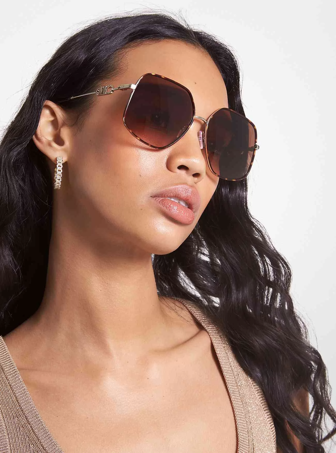Übergroße, quadratische Rahmen verleihen dieser ausdrucksstarken Sonnenbrille ein 70er-Jahre-Feeling. Sie bestehen aus Metall und verfügen über getönte Gläser, die an sonnigen Tagen UV-Schutz bieten. Vervollständigen Sie den Retro-Look, indem Sie ihn mit einem fließenden Kleid und Clogs kombinieren.