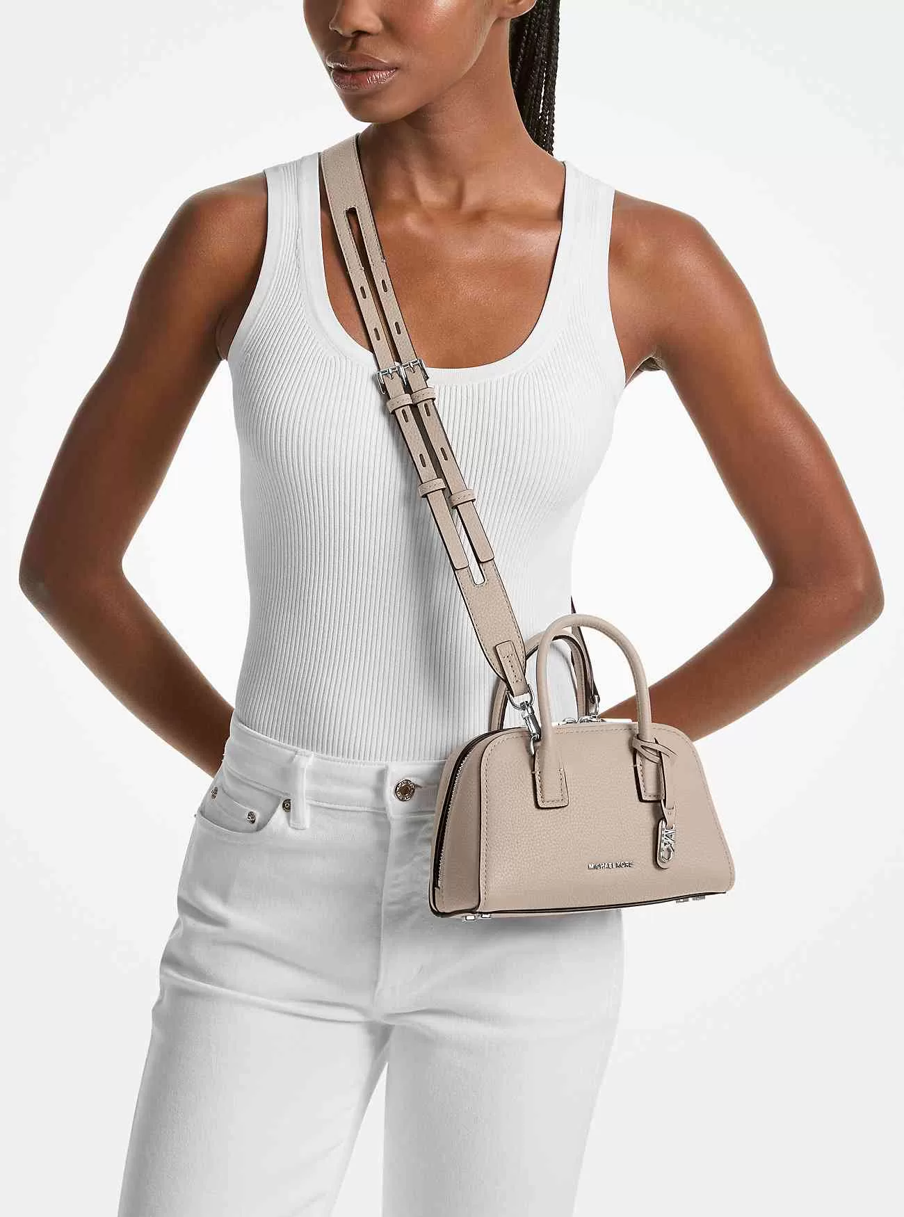 Unsere Ashton-Umhängetasche ist eine geschrumpfte Version der klassischen Bowlingtaschenform und wird durch Tragegriffe oben und einen breiten Doppelschnallenriemen für eine taktile Haptik befestigt. Die Außenseite aus gekrispeltem Leder verspricht luxuriöse Haltbarkeit, während der offene Innenraum Platz für alles Wichtige bietet.
