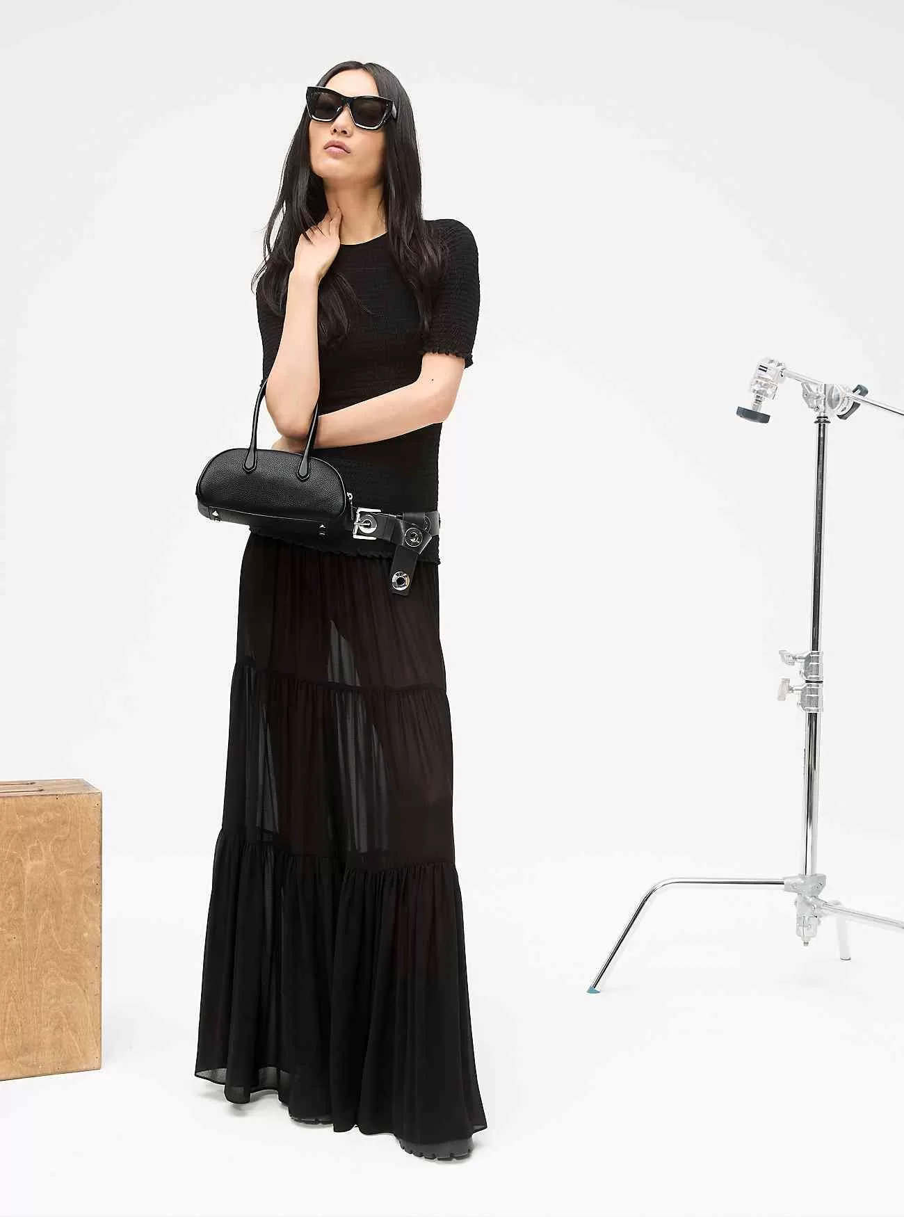 Dieses Hemd aus leichtem Georgette mit Allover-Smoking ist ein vielseitiges Basic, das elegant oder leger getragen werden kann. Gönnen Sie sich einen minimalistischen 90er-Jahre-Moment und kombinieren Sie es mit einem Jeansrock und einer Umhängetasche.