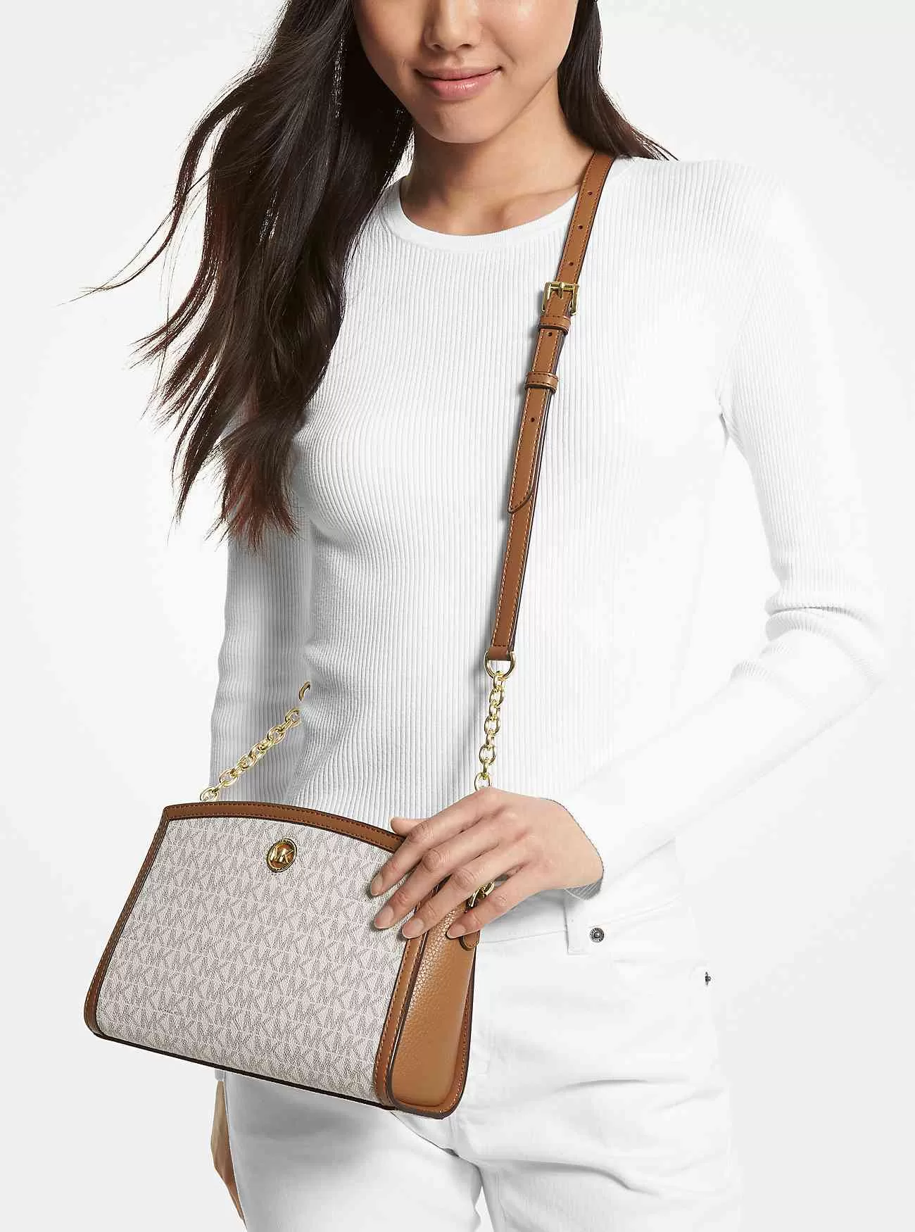 Mit ihrer strukturierten Silhouette und der glamourösen Hardware ist unsere Chantal-Umhängetasche mit Lederbesatz ein Muss in jeder anspruchsvollen Garderobe. Es ist mit einem charakteristischen Logo-Aufdruck gefertigt und verfügt über eine Einschubtasche auf der Rückseite, in der nur das Nötigste sicher verstaut werden kann. Tragen Sie es an den stabilen Tragegriffen oben oder an geschäftigen Tagen am abnehmbaren Umhängeriemen.