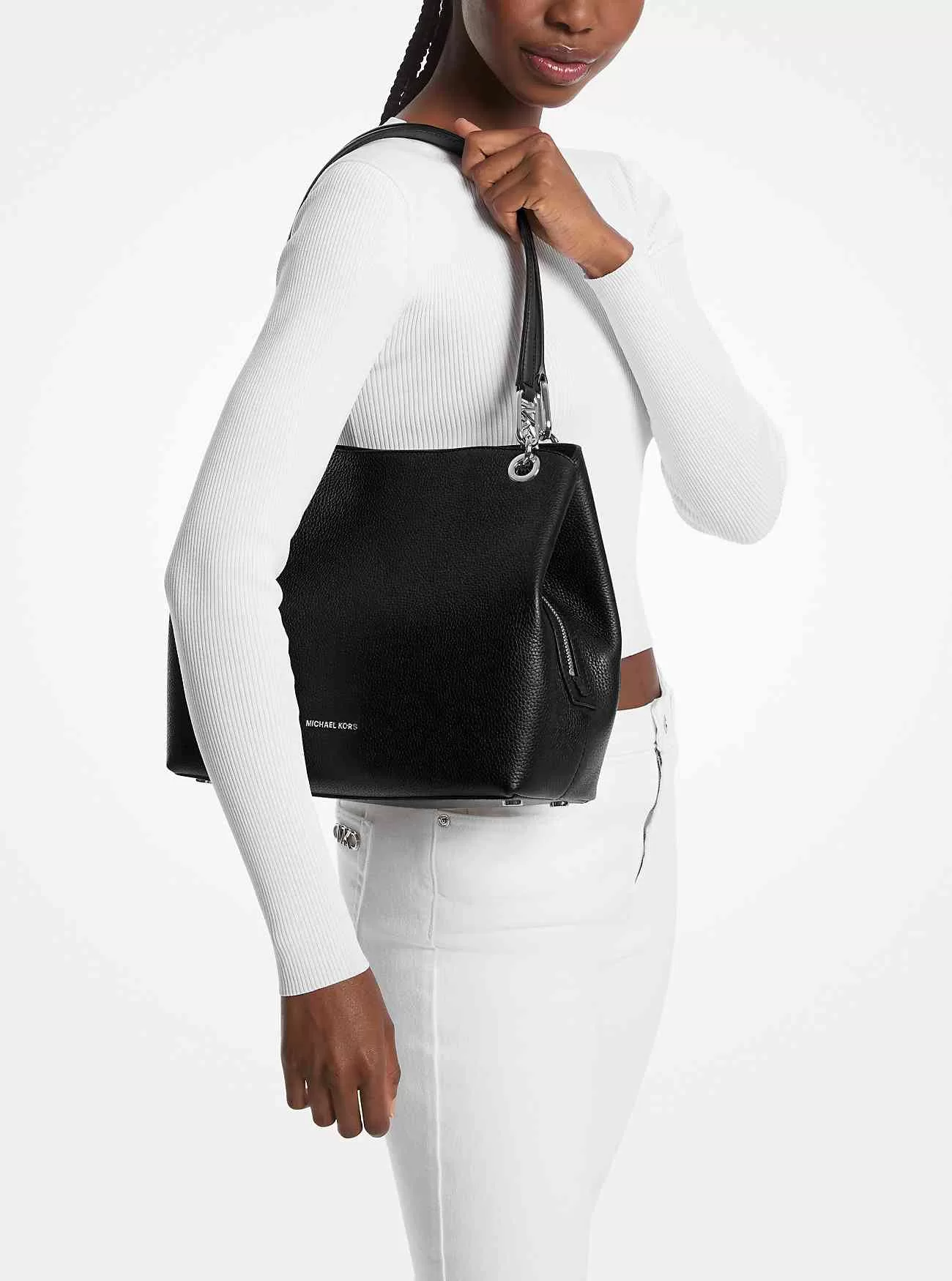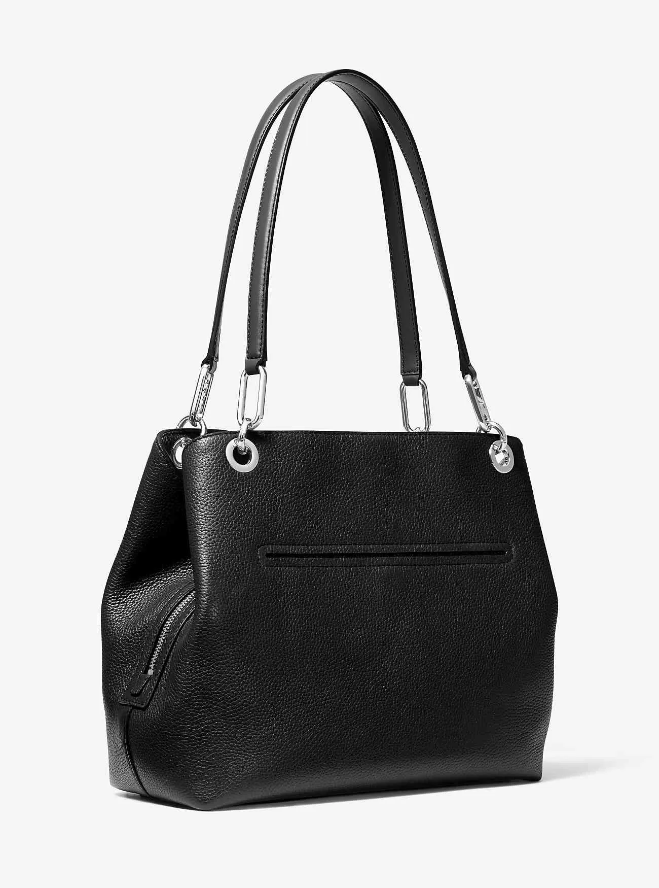 Unsere Kensington-Tasche bietet Platz für alles, was Sie brauchen, und ein cleveres Design sorgt für Ordnung. Die mittlere Reißverschlusstasche eignet sich perfekt zur Aufbewahrung von Wertsachen, während in zwei Seitenfächern problemlos größere Gegenstände untergebracht werden können. Die lockere Form und die Oberfläche aus genarbtem Leder runden diesen Stil mit einer luxuriösen und doch entspannten Note ab.