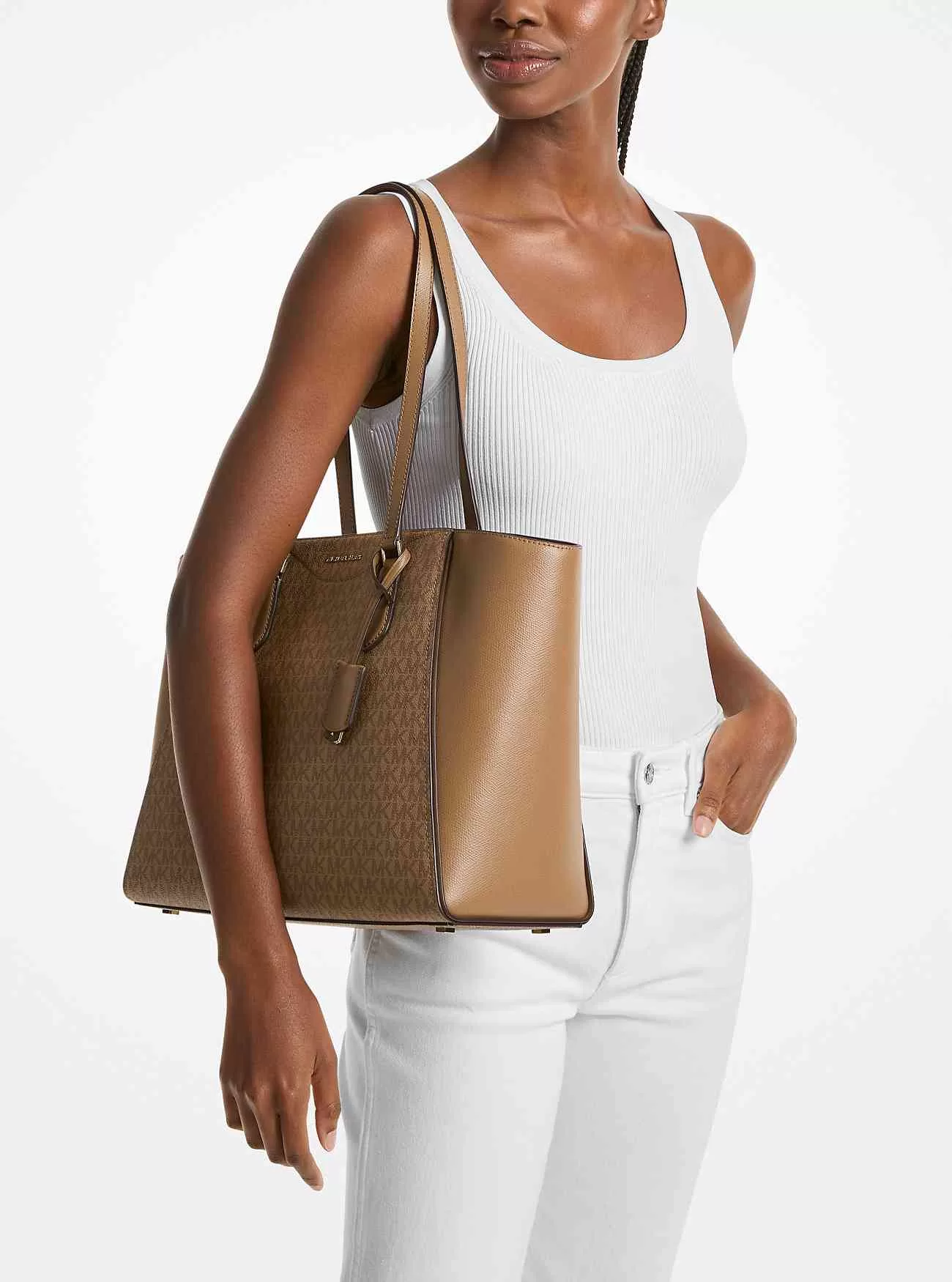 Die Taryn-Tasche ist ein elegantes Basic für Arbeitstage, Wochenenden und jeden Moment dazwischen. Diese strukturierte Tasche ist aus unserem charakteristischen Canvas mit Logodruck und Lederbesatz gefertigt und verfügt über Trapeznähte und einen abnehmbaren Schlossanhänger. Der Reißverschluss lässt sich öffnen und offenbart einen geräumigen Innenraum mit Seitentaschen und einem Mittelfach für Ihr Tablet oder Wertsachen.