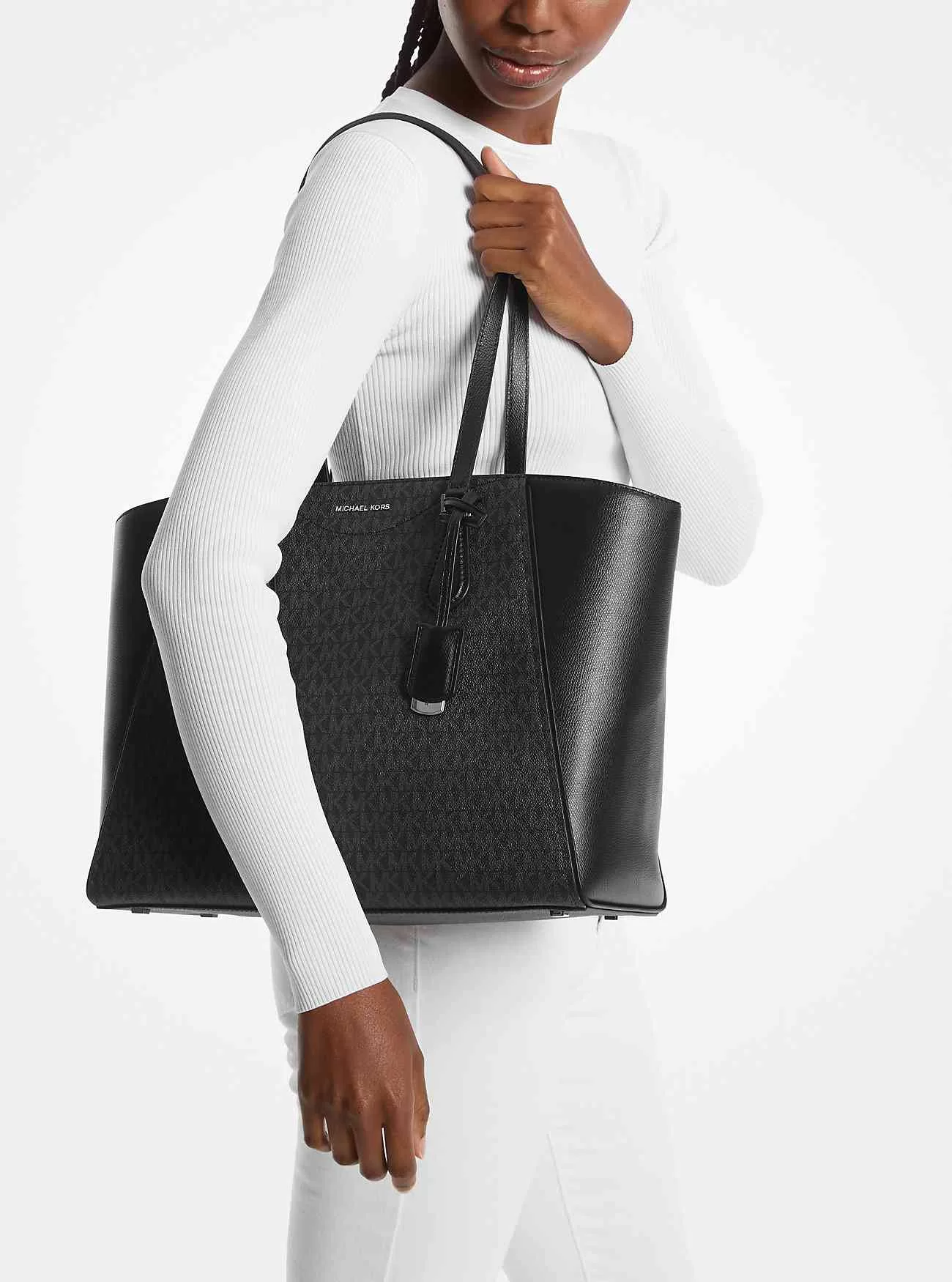 Die Taryn-Tasche ist ein elegantes Basic für Arbeitstage, Wochenenden und jeden Moment dazwischen. Diese strukturierte Tasche ist aus unserem charakteristischen Canvas mit Logo-Print und massivem Lederbesatz gefertigt und verfügt über Trapeznähte und einen abnehmbaren Schlossanhänger. Der Reißverschluss lässt sich öffnen und offenbart einen geräumigen Innenraum mit Seitentaschen und einem Mittelfach für Ihr Tablet oder Wertsachen.