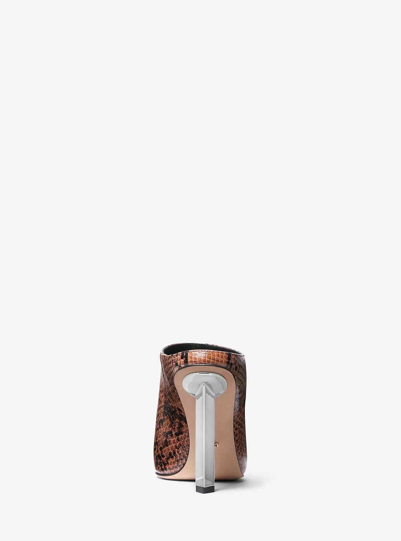 Die Leichtigkeit eines Mules trifft auf die Eleganz eines Pumps. Dieses aus Leder mit Schlangenprägung gefertigte Slip-on-Modell verfügt über einen galvanisierten Absatz für einen Hauch von Glanz. Tragen Sie es tagsüber und abends, bei der Arbeit oder am Wochenende.