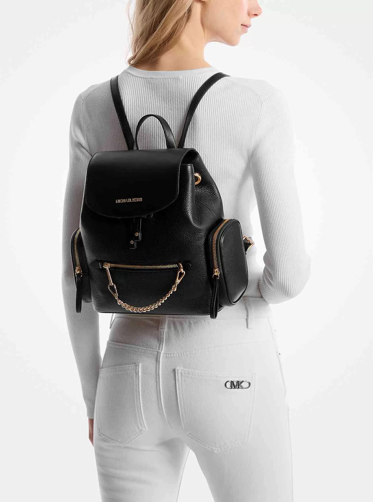 Unser Jet Set-Rucksack ist die ultimative elegante und dennoch praktische Tragetasche. Die locker strukturierte Silhouette wird mit Kordelzug und Druckknöpfen befestigt, um alle Ihre Habseligkeiten sicher zu verstauen, während mehrere Reißverschlusstaschen mit vergoldeten Beschlägen für ein luxuriöses Finish sorgen. Packen Sie es sowohl für den morgendlichen Pendelverkehr als auch für Wochenendabenteuer ein.