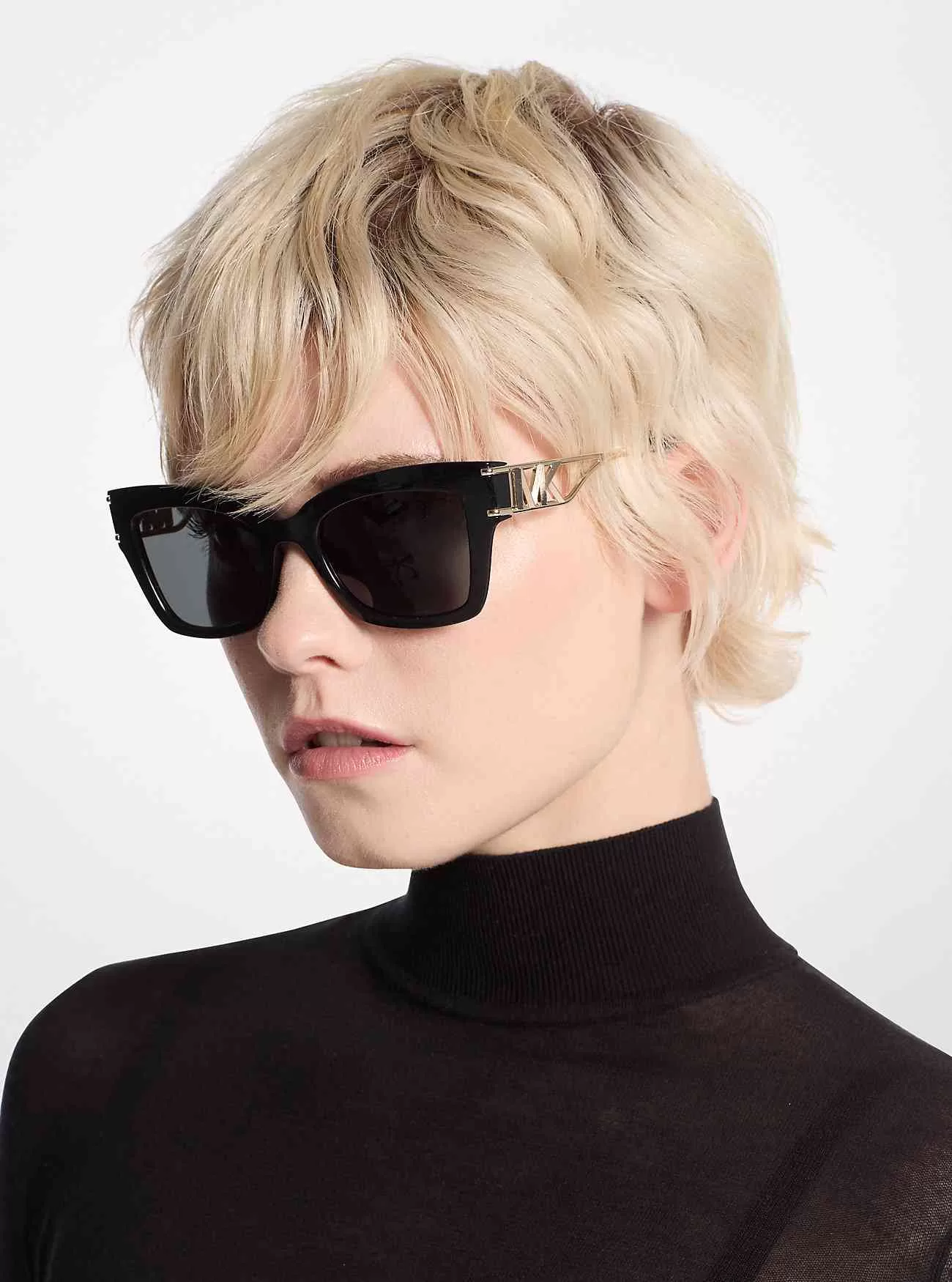 Quadratische Sonnenbrille. Kunststoffrahmen. Inklusive Etui. 100 % UV-Schutz. Importiert