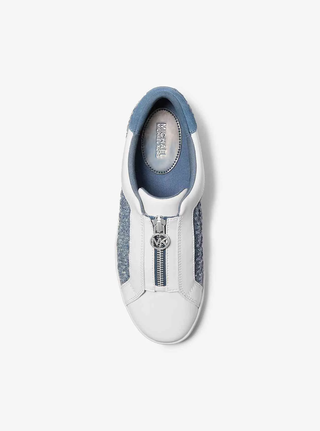 Keaton-Logo-geprägter Reißverschluss-Sneaker aus Denim und Leder