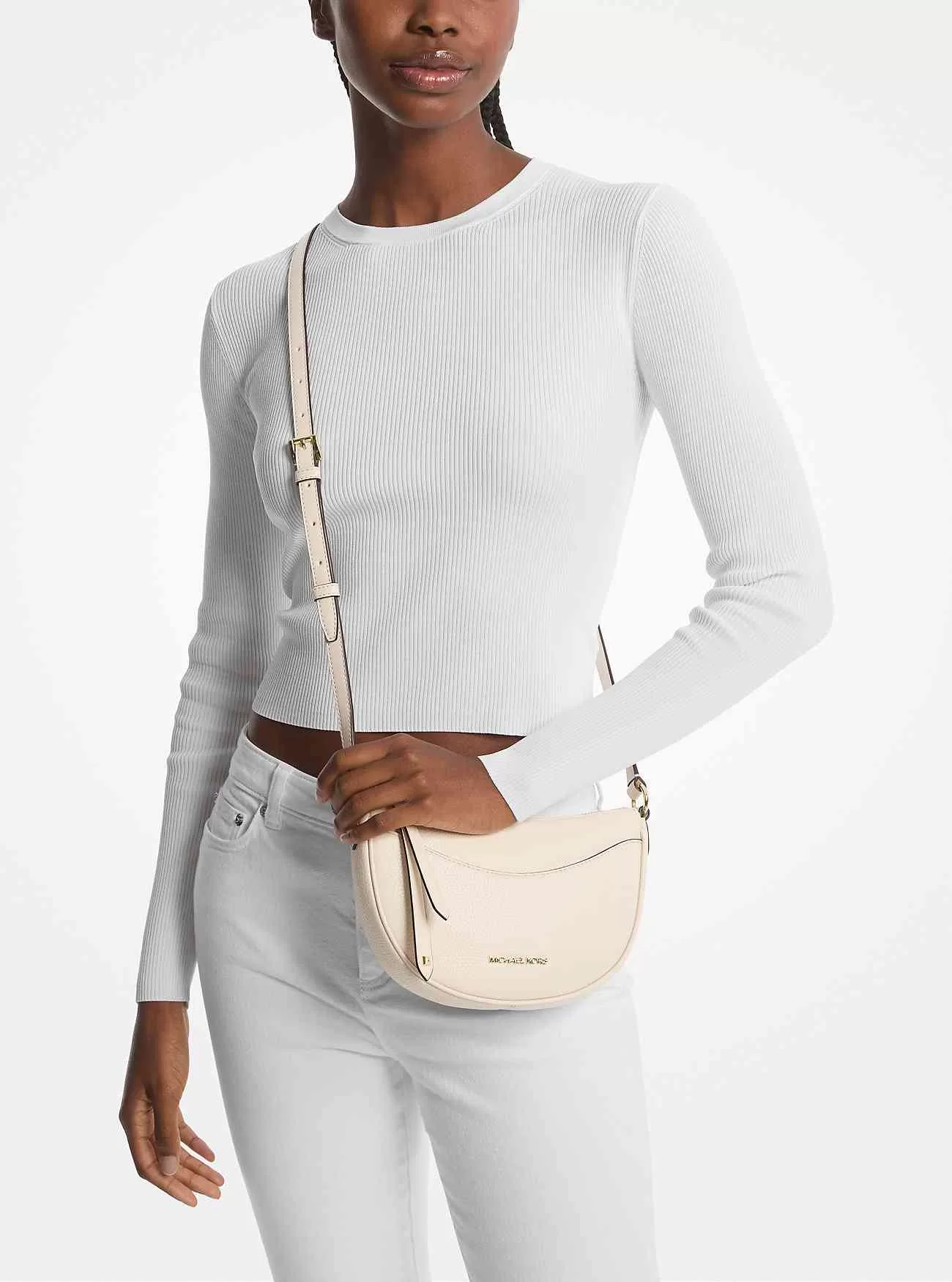 Unsere Dover Umhängetasche ist eine Anspielung auf die beliebten Handtaschenmodelle der 90er Jahre und besteht aus weichem genarbtem Leder in einer eleganten, halbmondförmigen Silhouette. Es öffnet sich zu einem mit einem Logo ausgekleideten Innenraum, der Platz für Ihr Telefon, Ihr Kartenetui und Ihre Schlüssel bietet. Der breite Riemen ist gerade lang genug, um ihn quer über dem Körper zu tragen, was ihn zu einer perfekten Option für unterwegs macht.