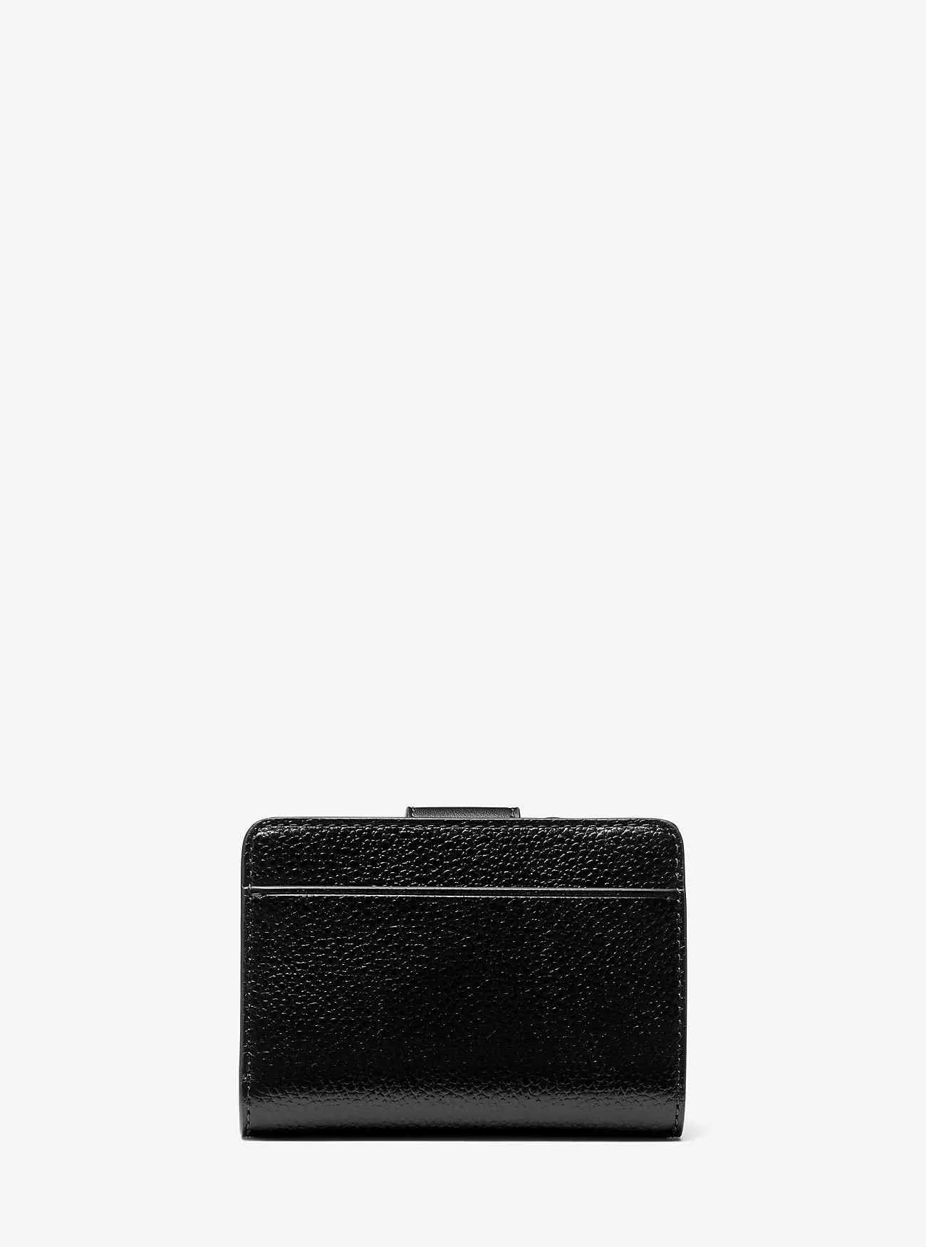 Diese Geldbörse besteht aus einer Mischung aus Glatt- und genarbtem Leder und ist eine stilvolle Möglichkeit, organisiert zu bleiben. Ein polierter Logo-Anhänger sorgt für den charakteristischen Charme, während der Innenraum mit mehreren Steckplätzen reichlich Platz für Ihre Karten und Bargeld bietet. Das Beste daran ist, dass es dank seiner kompakten Größe mit jeder Tasche kompatibel ist, sodass Sie Ihren Look problemlos ändern können.