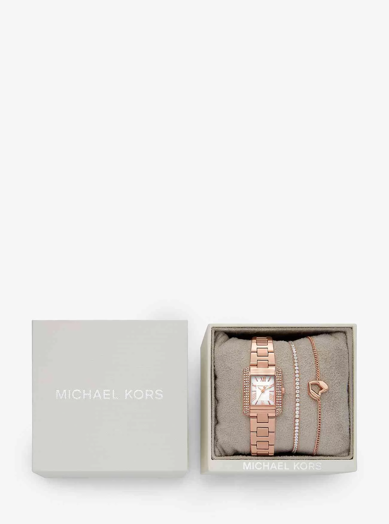 Mini Emery Pavé Roségoldfarbenes Uhren- und Armband-Geschenkset