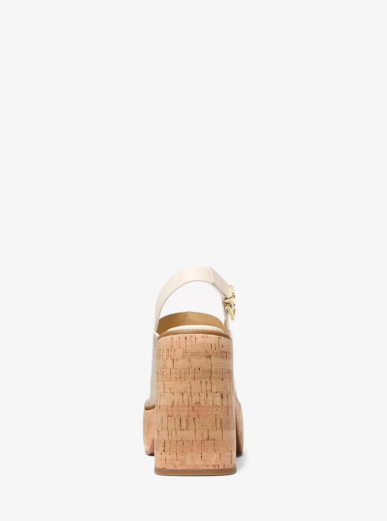 Unsere Leia-Sandale hat eine von den 70ern inspirierte Silhouette und wertet sowohl lässige als auch maßgeschneiderte Ensembles sofort auf. Dieses Paar aus Leder verfügt über einen breiten Vorder- und Slingback-Riemen zur Sicherung des Fußes, während eine klobige Korkplattform das Bein verlängert. Halten Sie sie mit verkürzten Säumen im Fokus.