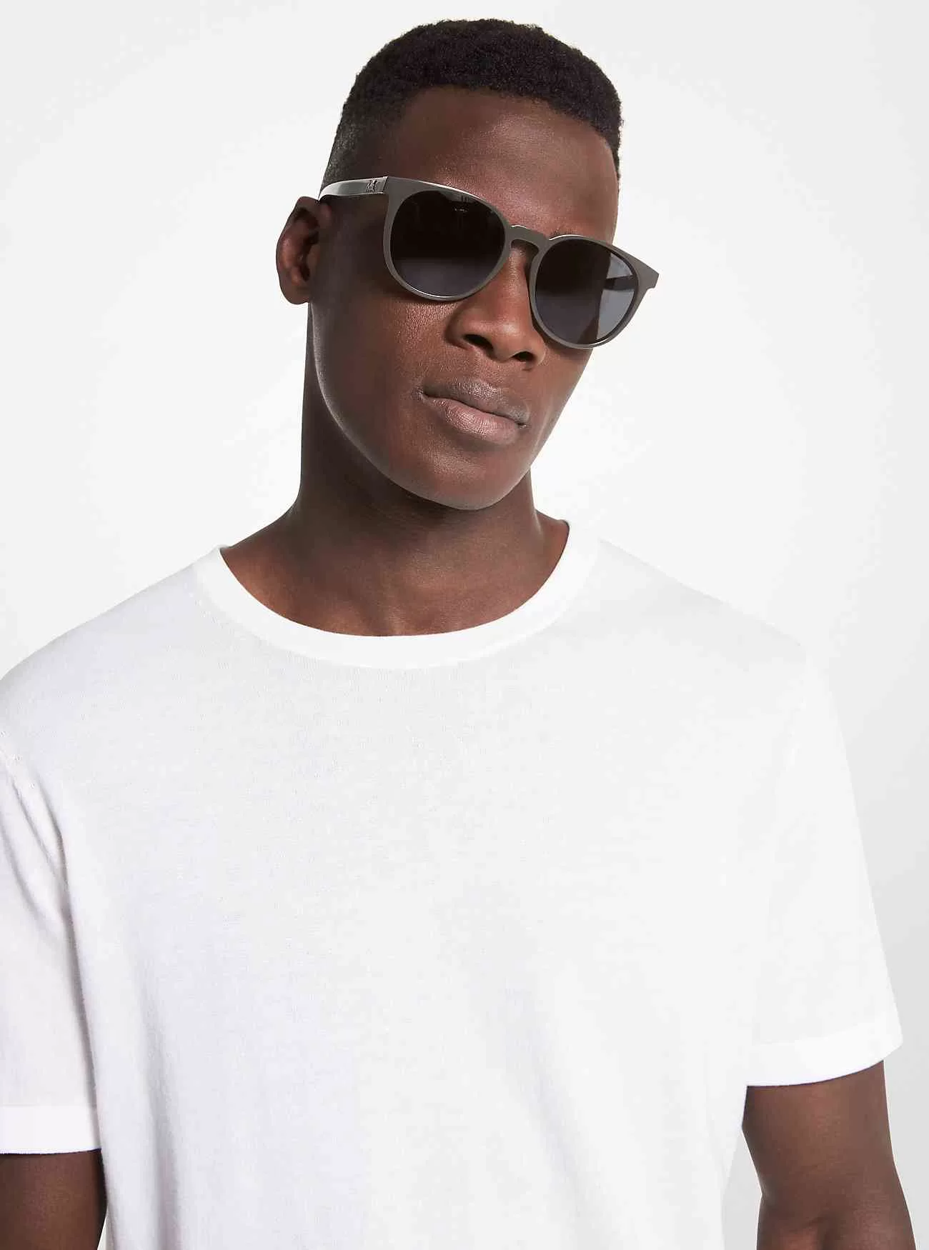 Nichts vervollständigt ein Outfit so sehr wie eine stilvolle Sonnenbrille. Unsere runde Texas-Sonnenbrille ist mit UV-Schutzgläsern ausgestattet und weist ein minimales Branding auf. Sobald die Sonne untergeht, stecken Sie sie in das dazugehörige Etui.
