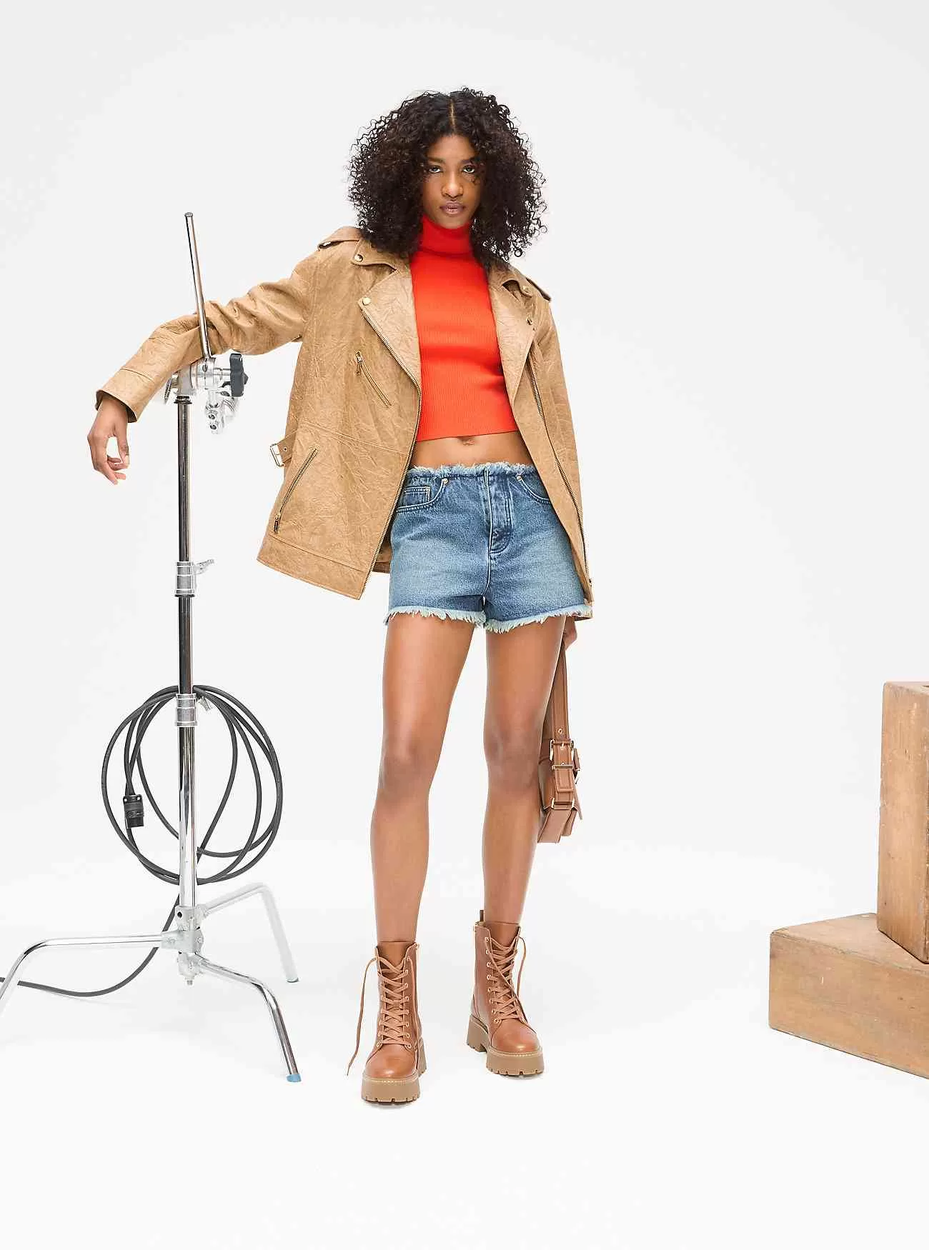 Diese übergroße Moto-Jacke ist aus butterweichem, gekräuseltem Leder mit goldfarbenen Beschlägen gefertigt und eine rebellische Neuauflage des Klassikers. Es lässt sich leicht mit fast allem kombinieren und ist die ideale Ergänzung zu Minikleidern, schmalen Jeans und vielem mehr.