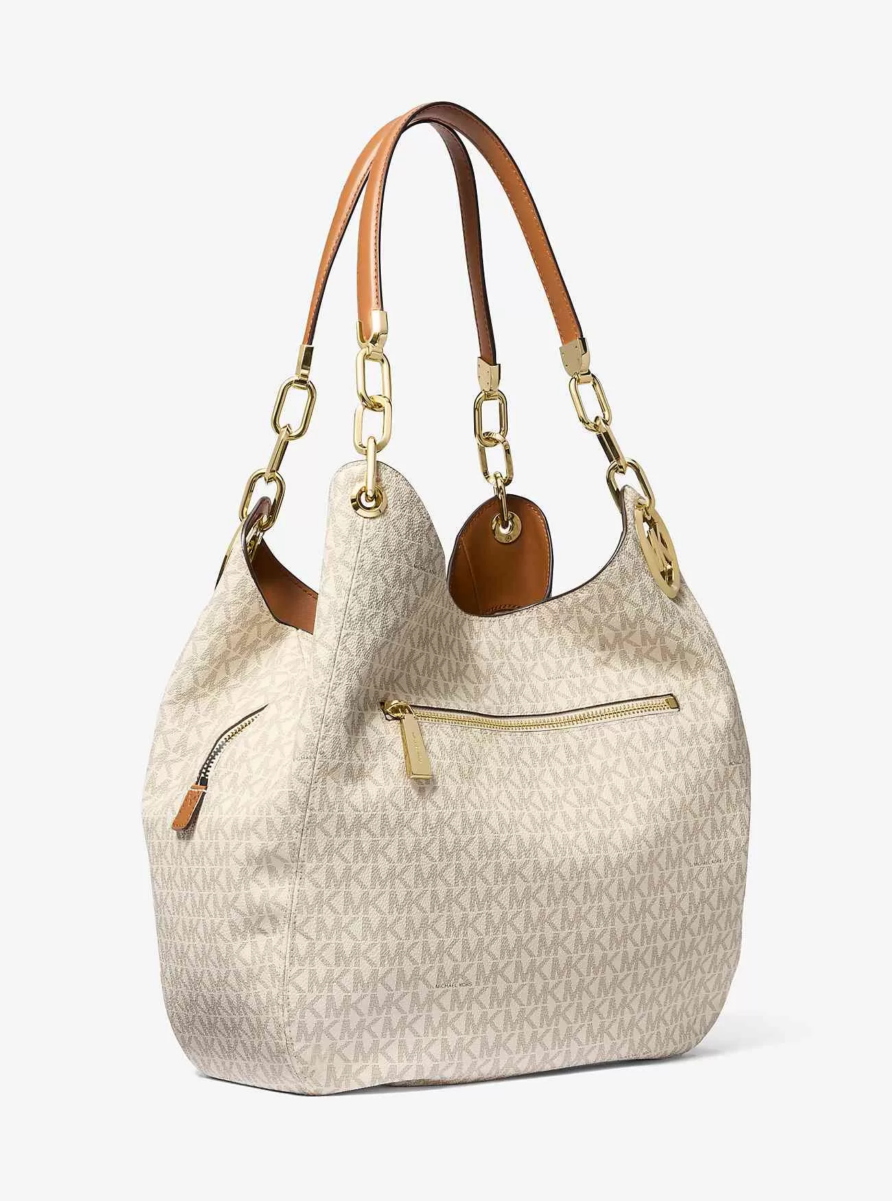 Unsere Lillie Umhängetasche vereint zeitlosen Glamour mit alltäglicher Funktionalität. Diese Tragetasche hat eine lockere Form und ist mit polierten Beschlägen versehen. Sie verfügt über unser charakteristisches Canvas mit Logo-Print und bietet beim Öffnen zwei Fächer mit Druckknöpfen und eine sichere Reißverschlusstasche in der Mitte. Verlassen Sie sich darauf, dass Sie Ihre Essentials mit stilvoller Leichtigkeit transportieren können.