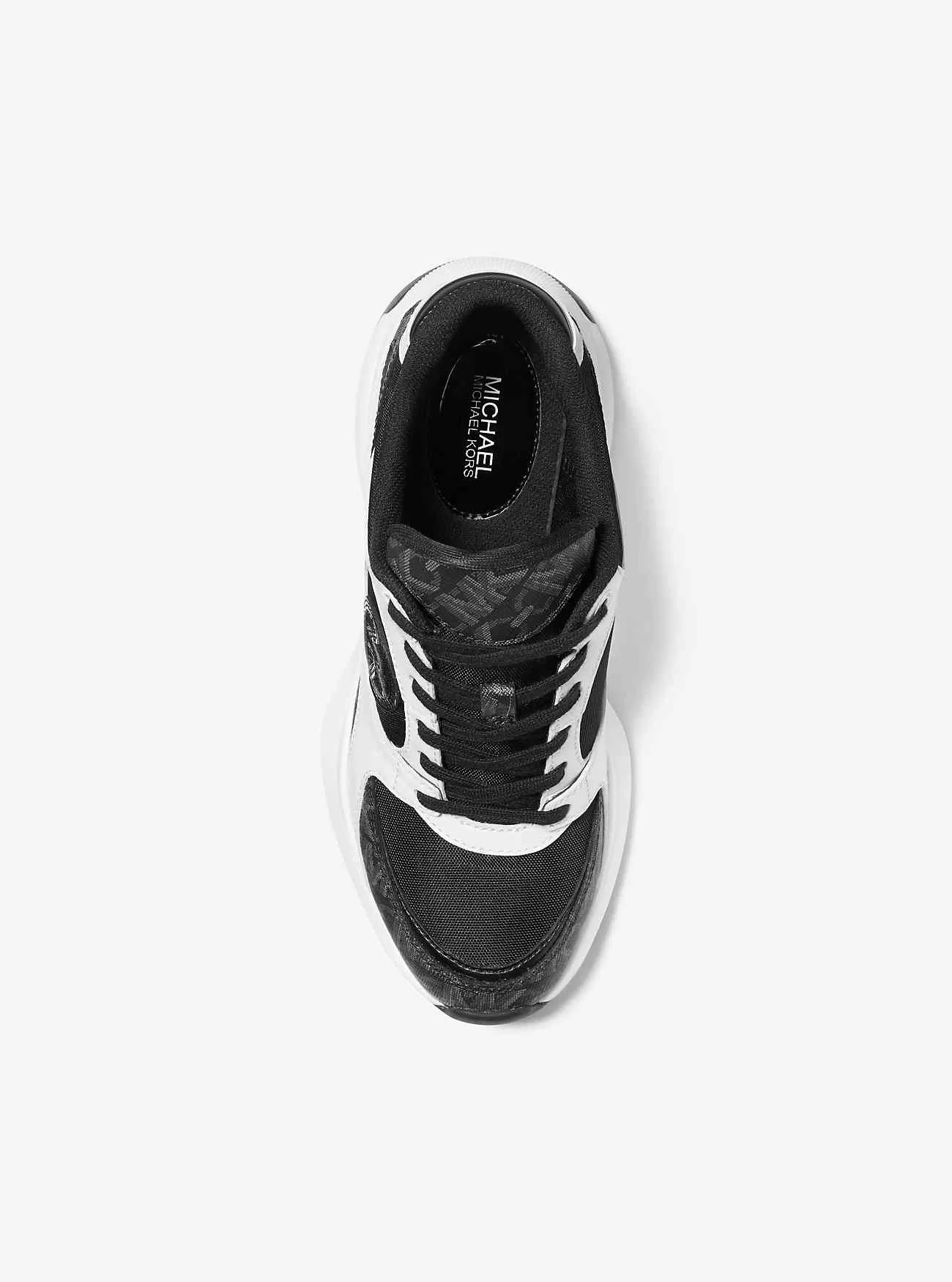 • Sneaker • Leder/Canvas mit Logo-Print • 100 % Leder • Besatz: 90,3 % beschichtetes Canvas/9,7 % Polyester • Futter: Polyester • Sohle: Gummi • Mandelförmige Spitze • Schnürverschluss • Absatzhöhe: 2,75 Zoll • Importiert