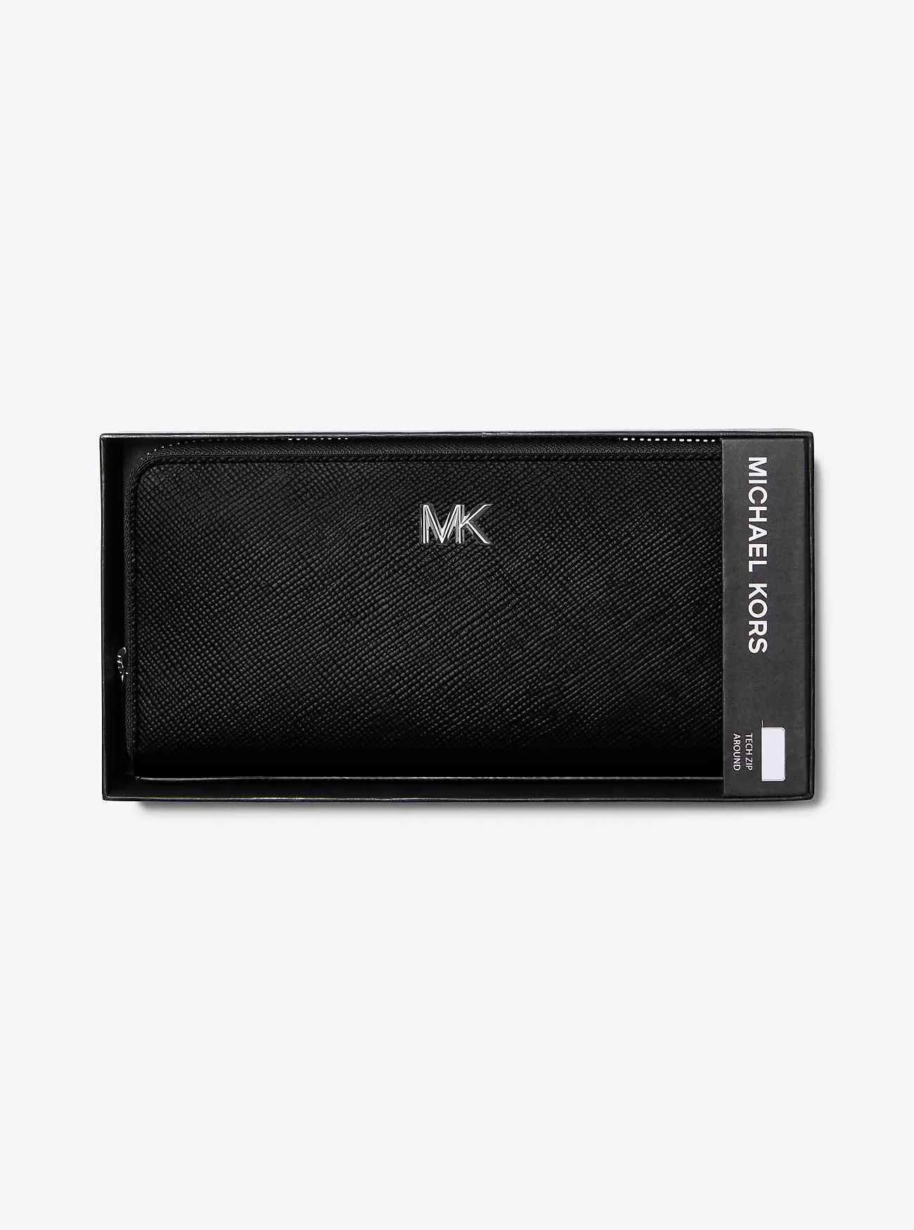 Bewahren Sie alles, was Sie brauchen, an einem Ort auf mit unserer Edison-Geldbörse mit umlaufendem Reißverschluss. Sie ist aus Saffiano-Leder mit charakteristischen Beschlägen gefertigt und lässt sich öffnen, um mehrere Kartenfächer, Platz für Bargeld und Quittungen, ein Münzfach mit Reißverschluss und ein spezielles Handyfach freizugeben. Es gibt sogar ein äußeres Einsteckfach für einfachen Zugriff auf Ihre am häufigsten verwendeten Karten.
