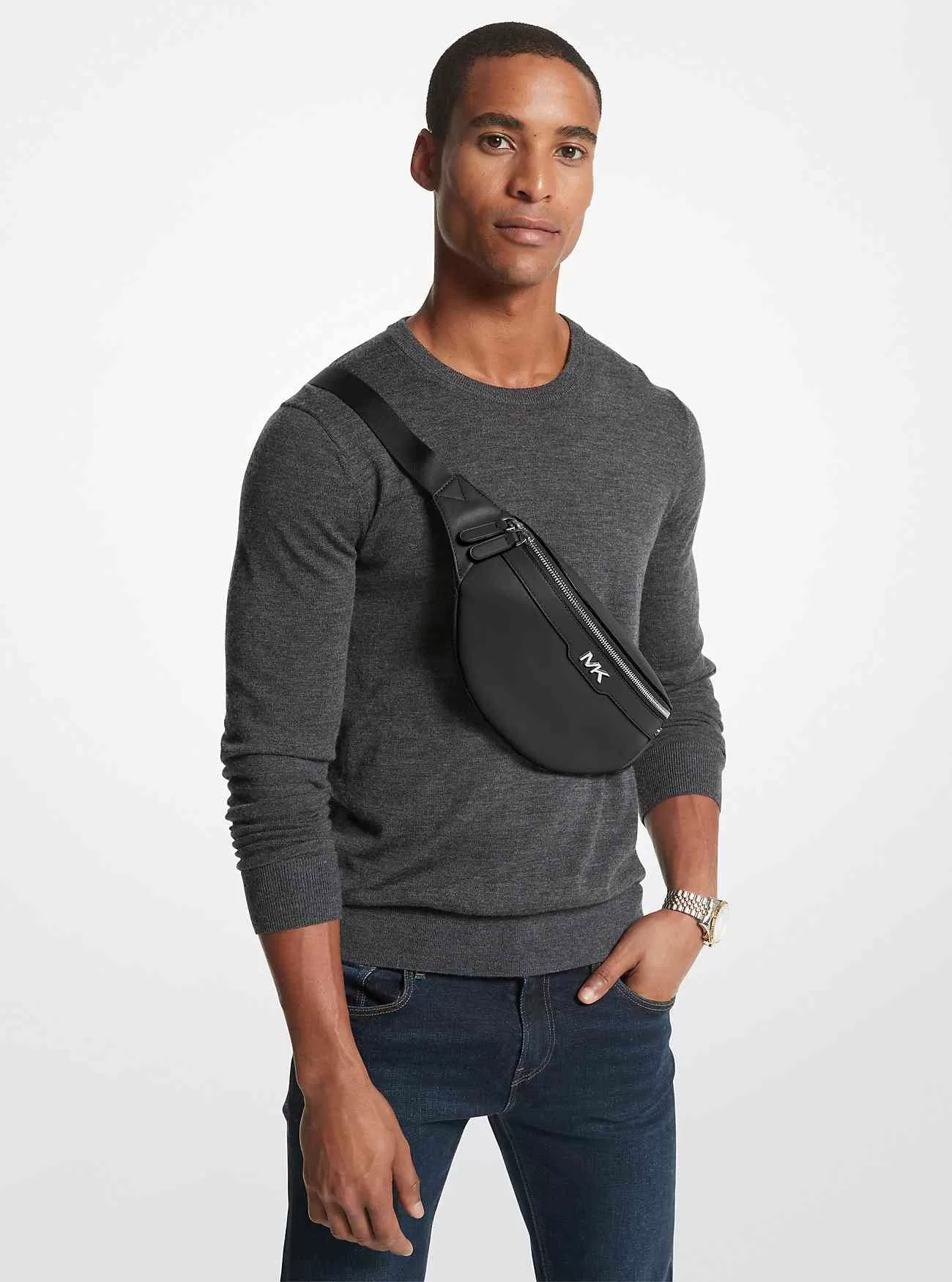Die Varick Gürteltasche ist ein perfektes Accessoire für unterwegs, wenn Sie einfachen Zugriff auf ein paar wichtige Dinge benötigen. Es besteht aus glattem Leder und verfügt über ein kompaktes, mit einem Logo ausgekleidetes Inneres und einen verstellbaren Riemen mit Schnallenverschluss. Tragen Sie es je nach Lust und Laune über einer Schulter oder um die Taille.