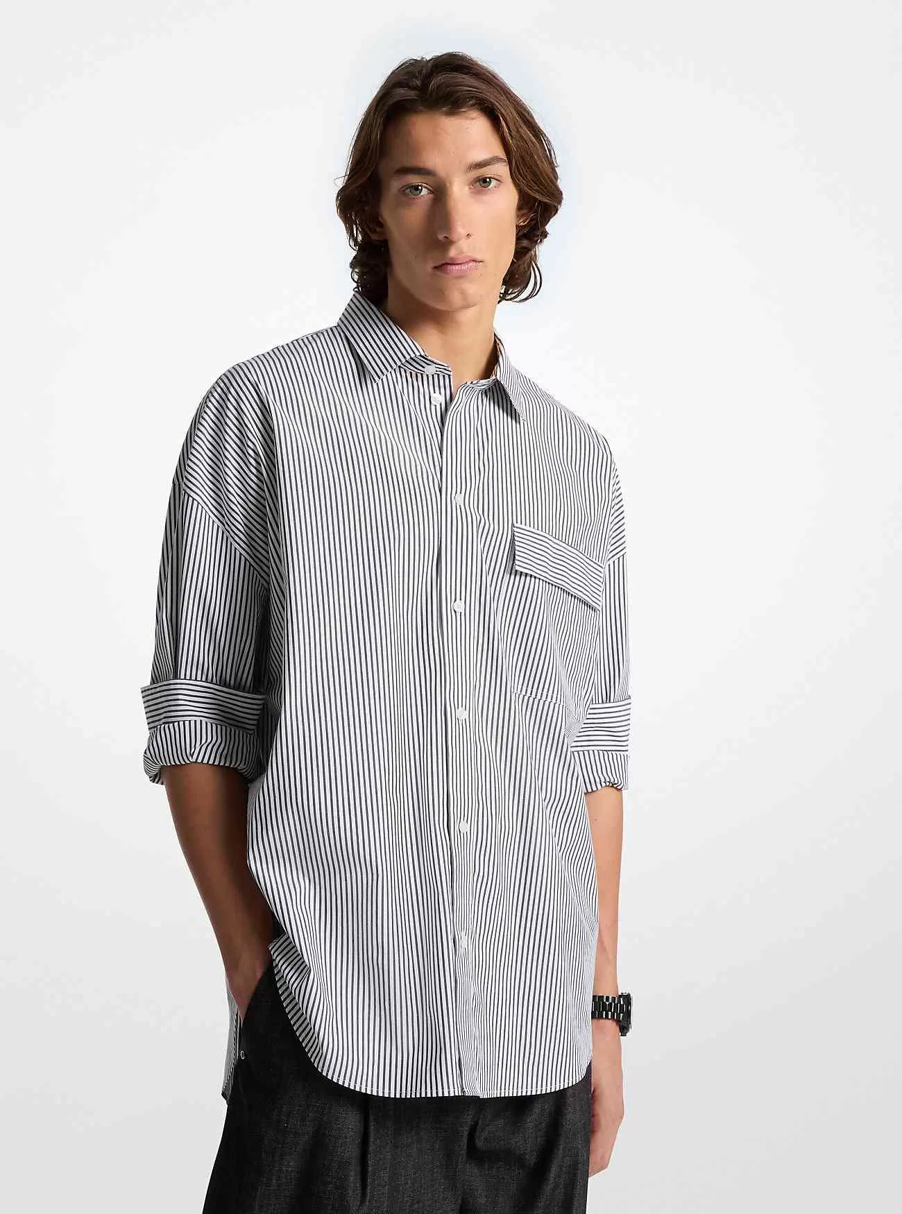 Übergroßes, gestreiftes Hemd aus Stretch-Baumwollpopeline