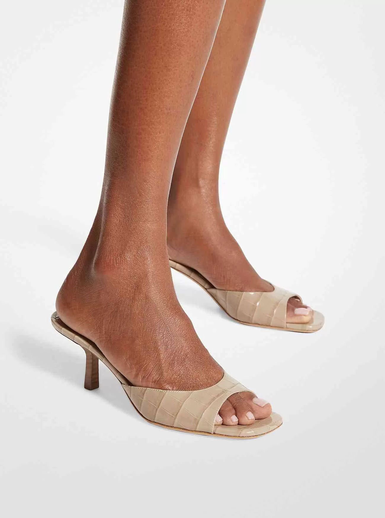 Unsere Anita-Sandale hat einen formschönen Kitten-Heel für feminines Flair und strahlt bei jedem Schritt fühlbaren Glamour und Selbstvertrauen aus. Dieses auffällige Paar wird in Italien fein aus Leder mit Krokodilprägung gefertigt und in einem neutralen Farbton gefärbt, was endlose Styling-Optionen bietet. Tragen Sie sie mit mittellangen Kleidern für einen gesprächigen Look.