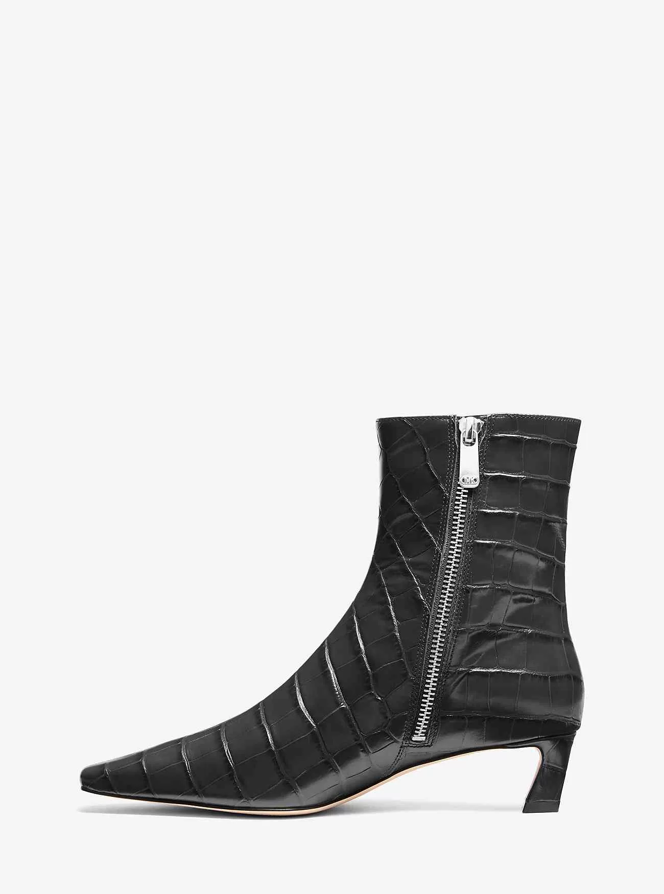 Müheloser Chic trifft auf ganztägigen Komfort in unseren umwerfenden Cosmo-Stiefeln. Sie sind aus luxuriösem Leder mit Krokodilprägung gefertigt und haben einen niedrigen, eleganten Kitten-Heel. Kombinieren Sie dieses elegante Paar sowohl zu Jeans als auch zu Minikleidern.