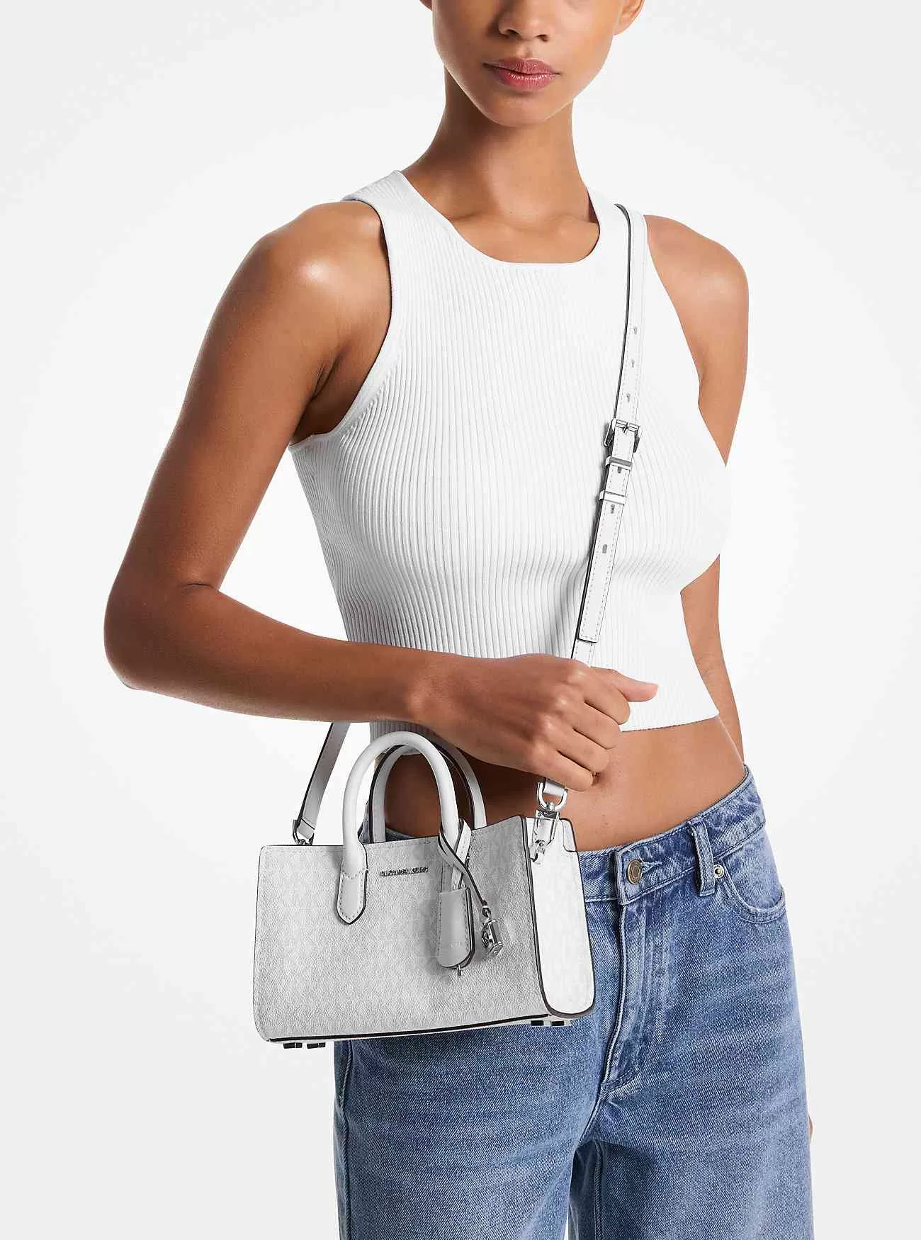 Extrakleine Scarlett-Umhängetasche mit charakteristischem Logo