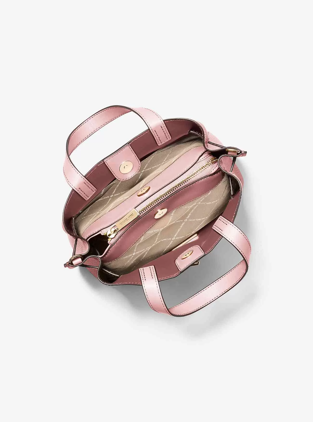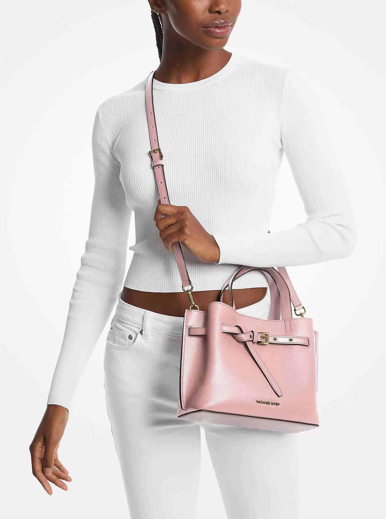 Wo auch immer, wann immer – unsere Schulranzen Emilia arbeiten hart und sind schick. Diese elegant stromlinienförmige und aus gekrispeltem Leder gefertigte Alltagshandtasche hat eine große Silhouette, die durch eine Gürtelsilhouette und goldfarbene Beschläge akzentuiert wird. Nehmen Sie den Umhängeriemen ab, um es an den oberen Henkeln zu tragen.