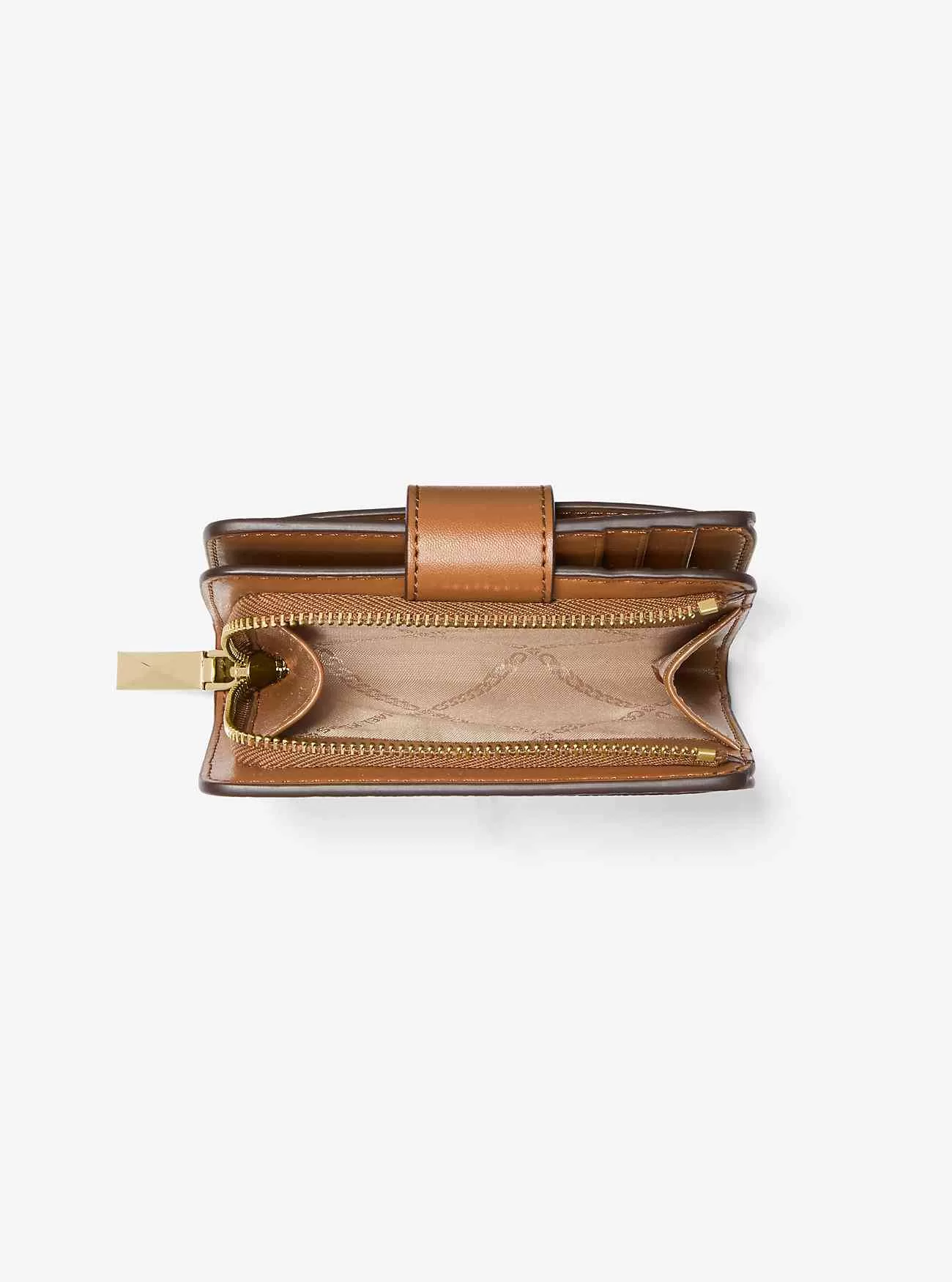 Diese kleine Geldbörse bietet dank ihres ultrakompakten Designs viel Stil und Stauraum. Beim Öffnen gibt es zahlreiche Kartenfächer und ein Münzfach mit umlaufendem Reißverschluss frei. Abgerundet wird es durch einen Druckknopfverschluss mit goldfarbenem Logoanhänger. Bewahren Sie Ihren Ausweis oder Ihre ÖPNV-Karte für einen einfachen Zugriff in der Außentasche auf.