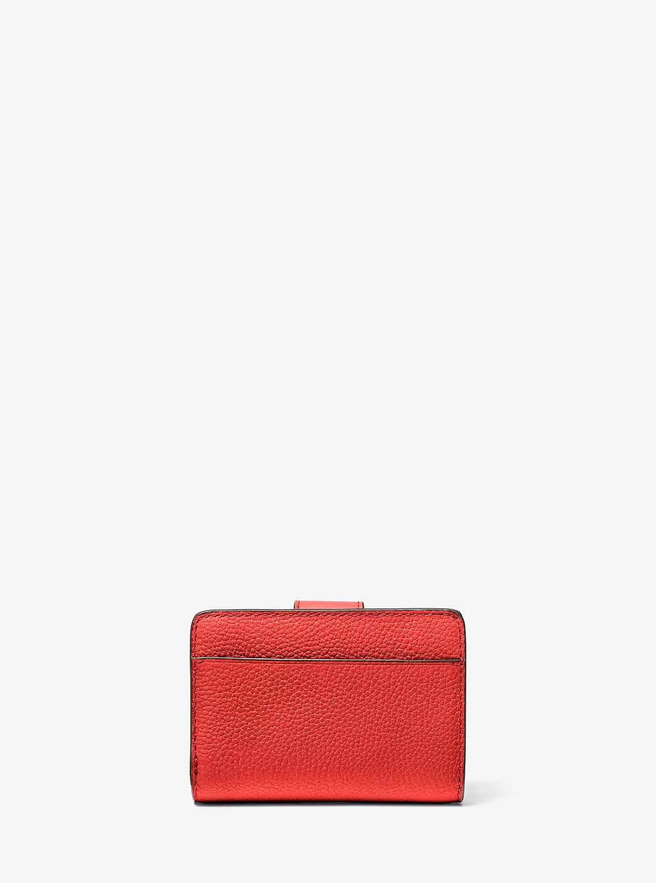 Diese Geldbörse besteht aus einer Mischung aus Glatt- und genarbtem Leder und ist eine stilvolle Möglichkeit, organisiert zu bleiben. Ein polierter Logo-Anhänger sorgt für den charakteristischen Charme, während der Innenraum mit mehreren Steckplätzen reichlich Platz für Ihre Karten und Bargeld bietet. Das Beste daran ist, dass es dank seiner kompakten Größe mit jeder Tasche kompatibel ist, sodass Sie Ihren Look problemlos ändern können.