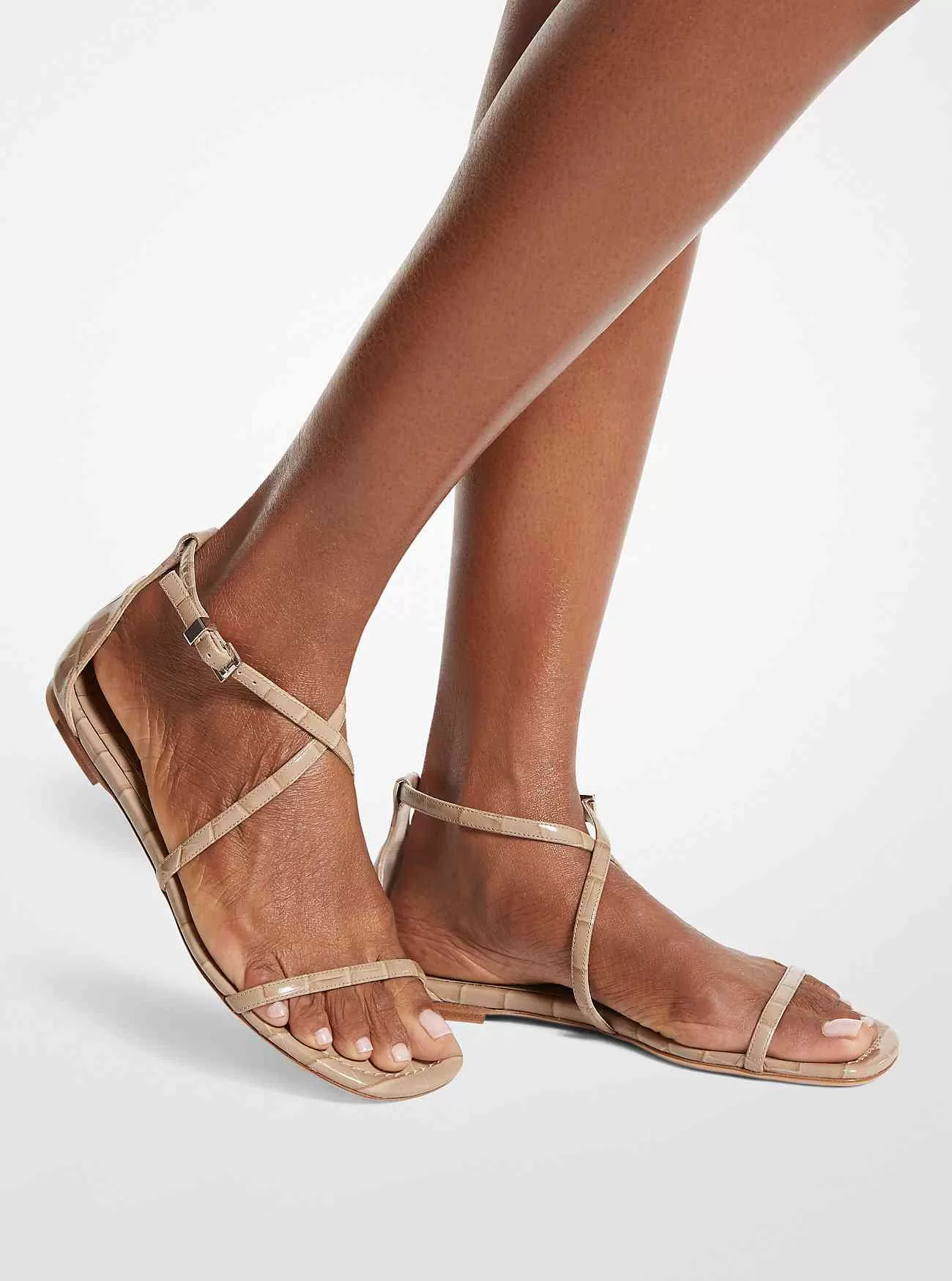 Unsere Polly-Sandale hat eine minimalistische Silhouette, die als perfekte Ergänzung zu den Resort-Looks der Saison dient. Schmale, überkreuzte Riemen vorne prägen dieses Modell aus Leder mit Krokodilprägung, das auf einem kaum sichtbaren Absatz ruht und für ein angenehmes Tragegefühl sorgt. Kombinieren Sie es mit einem Neckholder-Kleid, um mühelosen Charme auszustrahlen.