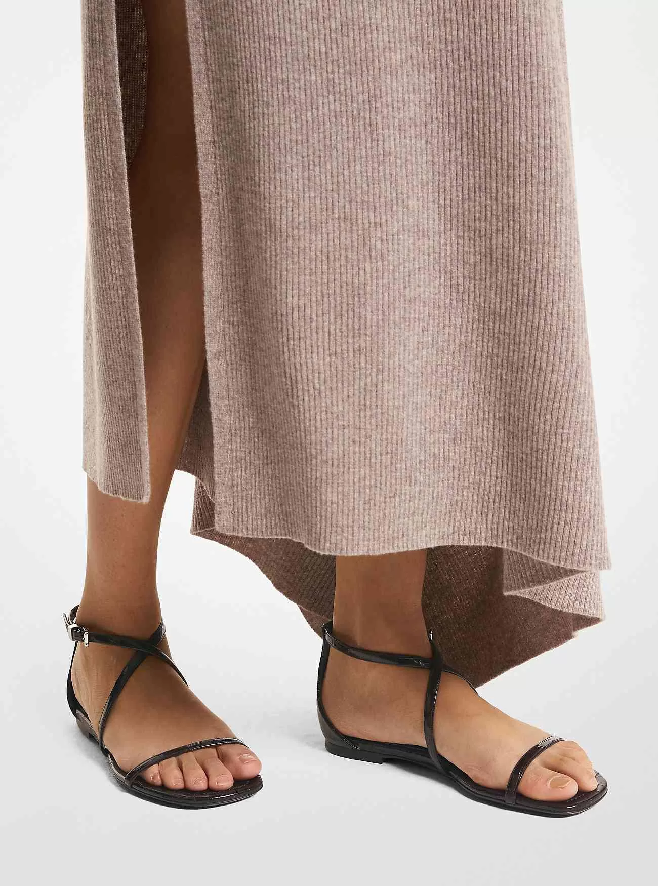 Wir stellen vor: Polly: eine minimalistische Sandale, die als perfekte Ergänzung zu den Resort-Looks der Saison dient. Schmale, überkreuzte Riemen vorne prägen diesen Stil aus Leder mit Krokodilprägung, der für ein angenehmes Tragegefühl auf einem niedrigen Absatz ruht. Kombinieren Sie es mit einem Neckholder-Kleid, um mühelosen Charme auszustrahlen.