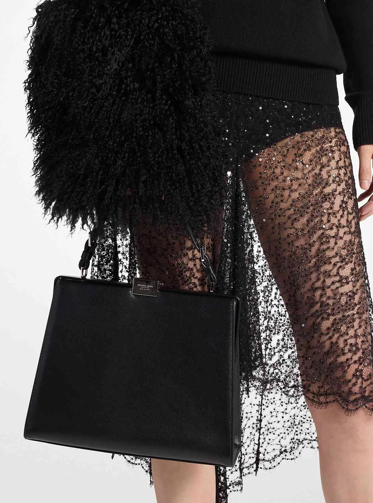 Der Inbegriff von poliertem Glamour. Die Simone-Umhängetasche wird in Italien aus hochwertigem Kalbsleder in einer strukturierten Silhouette mit Henkel und dezenter Hardware gefertigt. Tragen Sie es sowohl zu Tages- als auch zu Abendoutfits für ein damenhaftes Finish.